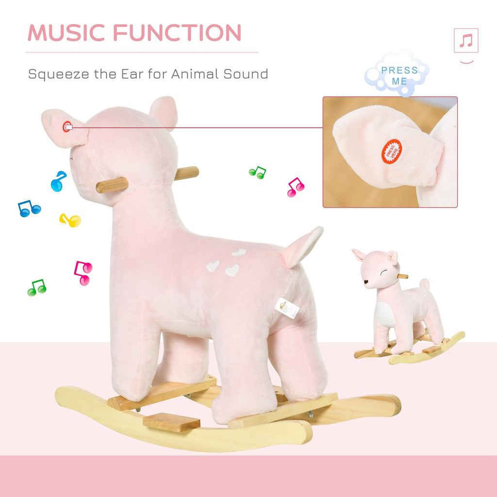 - MIT SOUNDS: Durch Drücken des Knopfes am Ohr spielt dieses Schaukelpferd in Form eines Hirsches realistische Geräusche.