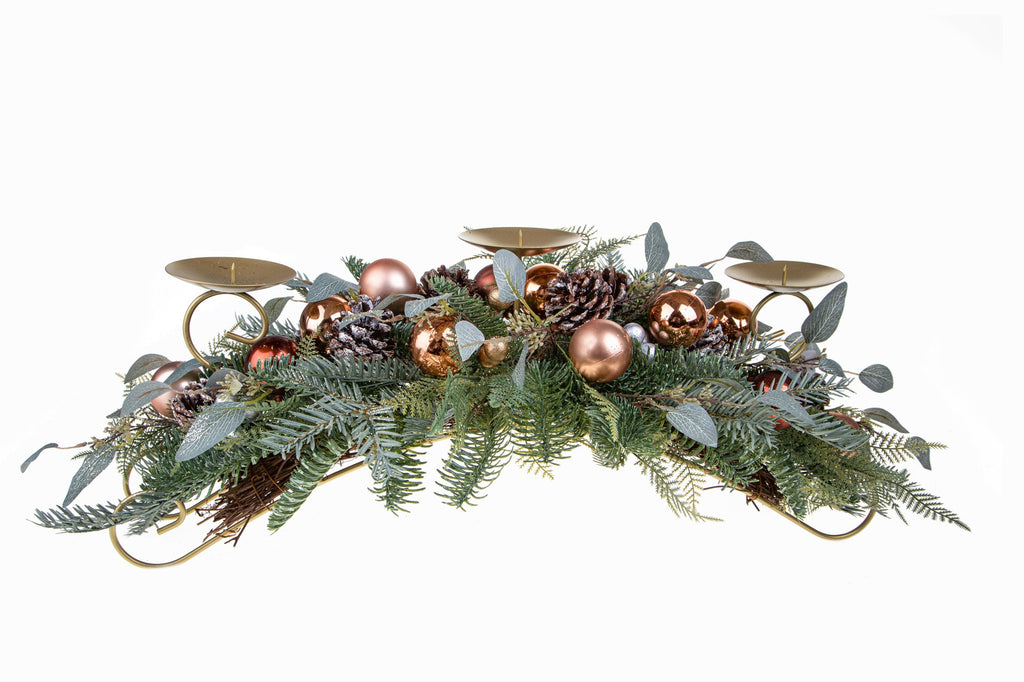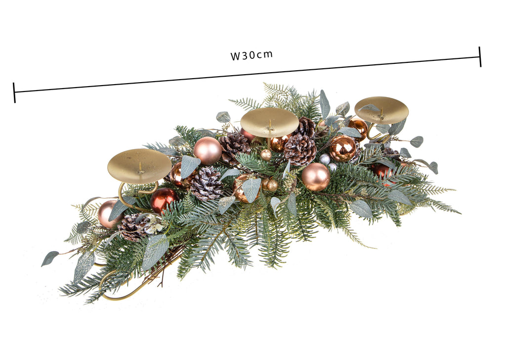 Weihnachtlicher Tafelaufsatz 72 cm für 3 Kerzen mit Dekokugeln