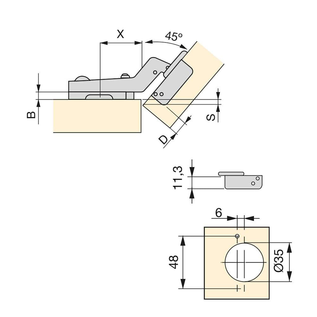 Home Bestseller Lieferungen Topfscharnier 35 mm 45º Winkelarm Sof...