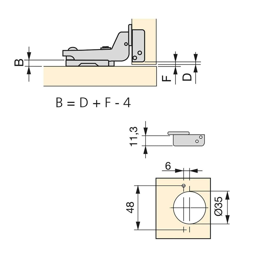 - Bohrtoleranz des Bechers D = 3 - 7 mm.