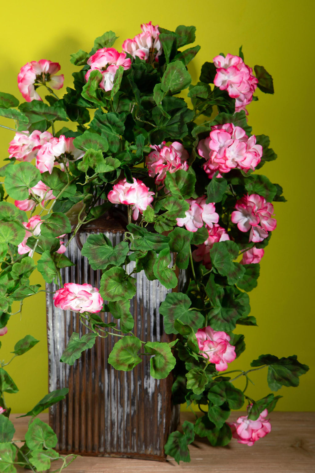 Set 2 künstliche Geraniensträucher zum Aufhängen, Höhe 80 cm, weiß