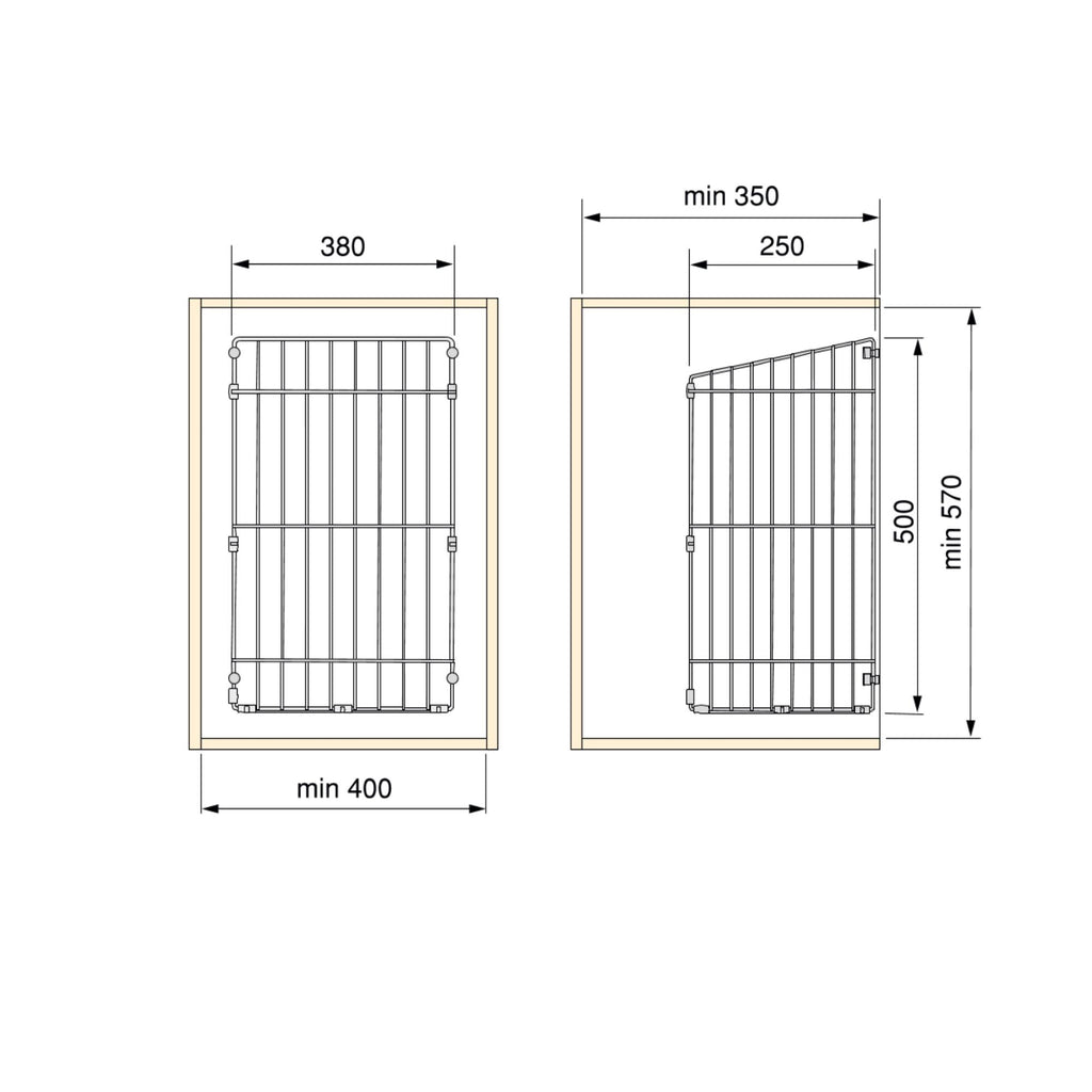 Cestino da bucato basculante per organizzare il bucato sporco. Questo cesto per la biancheria è dimensionato per un modulo di 450 mm.