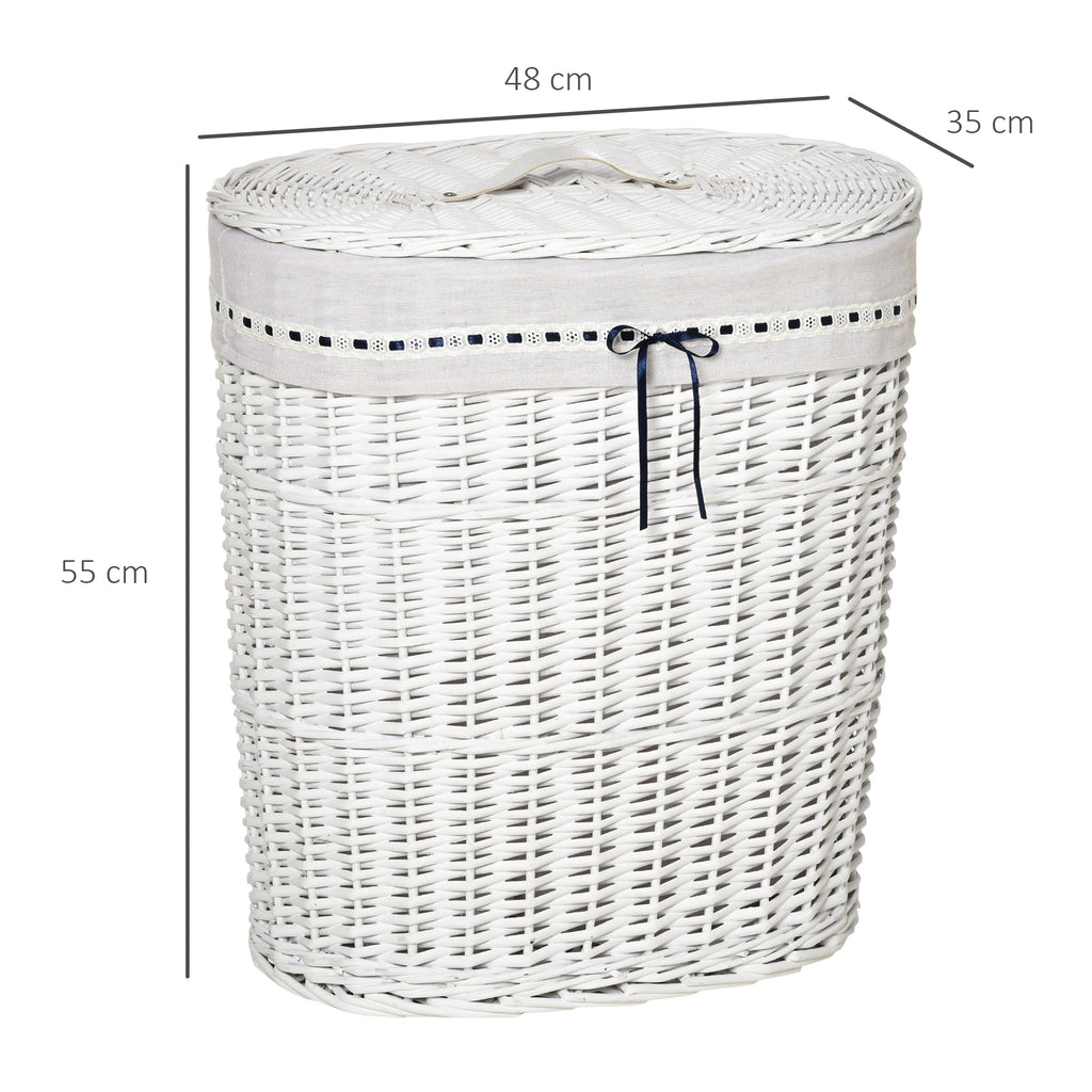 Wäschekorb aus Weidengeflecht 51 x 38 x 57 cm mit Deckel und weißer Innentasche