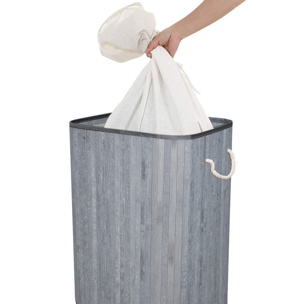 60x40x27 Wäschekorb mit grauen Bambushüllen und Deckel