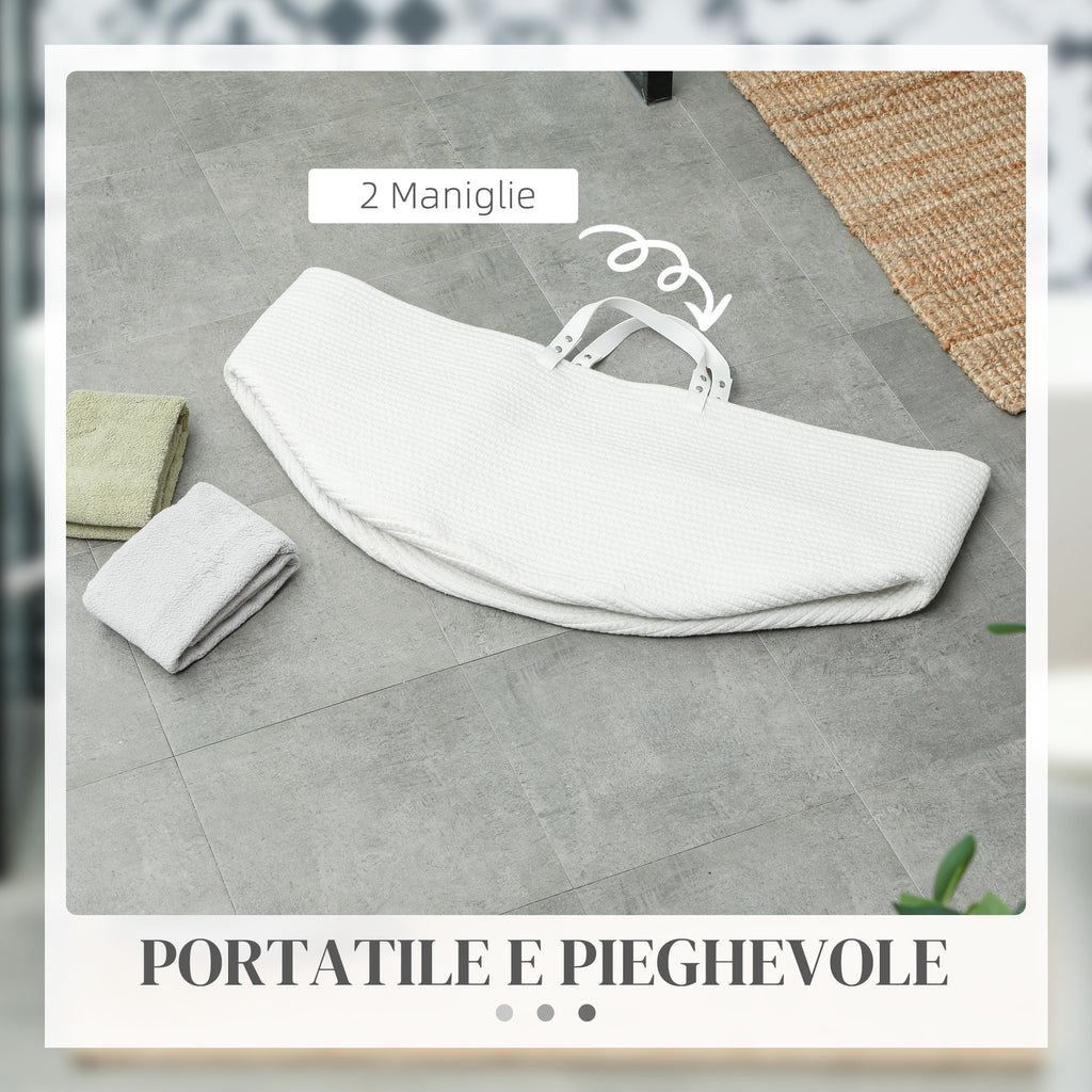 Cesto Portabiancheria Pieghevole con Manici 88L Ø56x35.5 cm in Cotone Naturale Bianco Crema