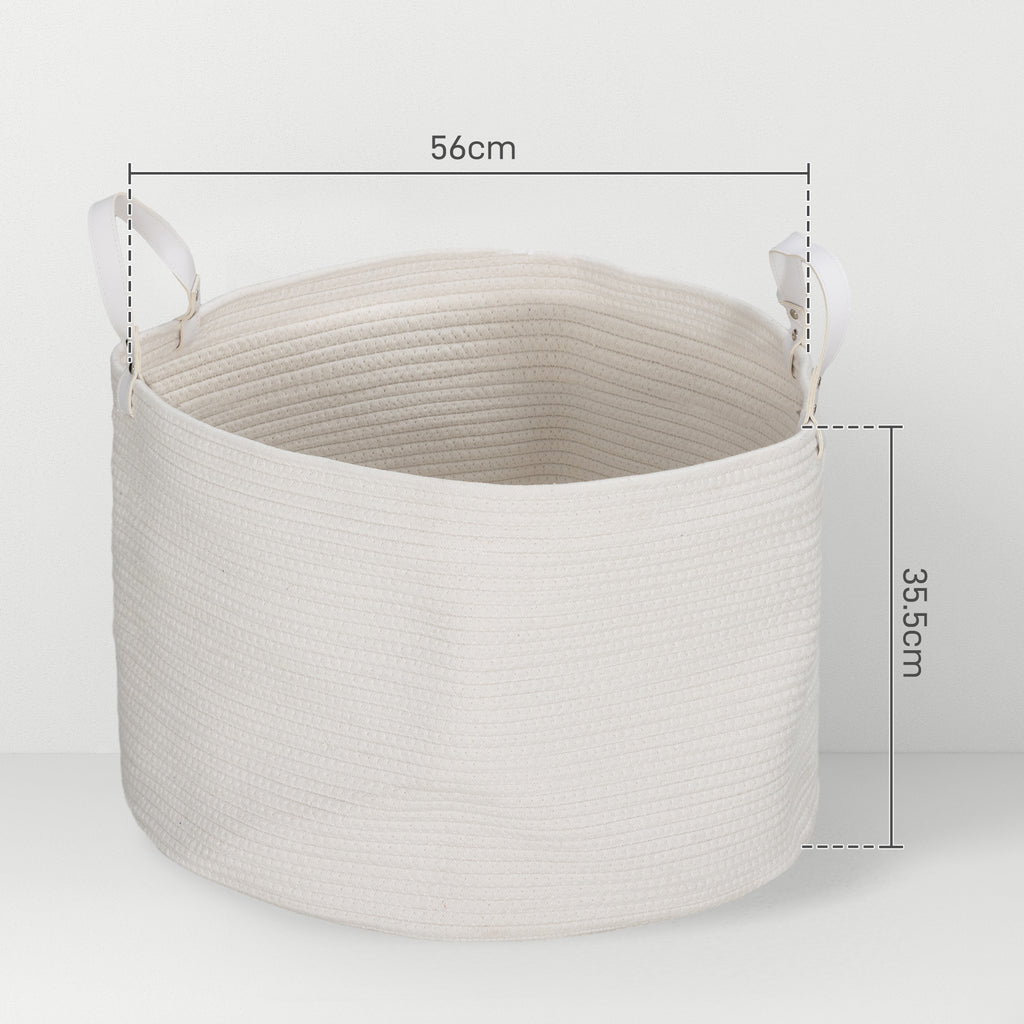 Lasciati conquistare dall'eleganza e dalla leggerezza del cesto portabiancheria in corda di cotone naturale per ospitare indumenti delicati. Grazie alla sua capacità di 88L, la struttura si rivela pratica, portatile e pieghevole, oltre che dotata di due maniglie. Pulirlo è facile, è sufficiente un lavaggio a 40°. Perfetto per organizzare la tua biancheria!