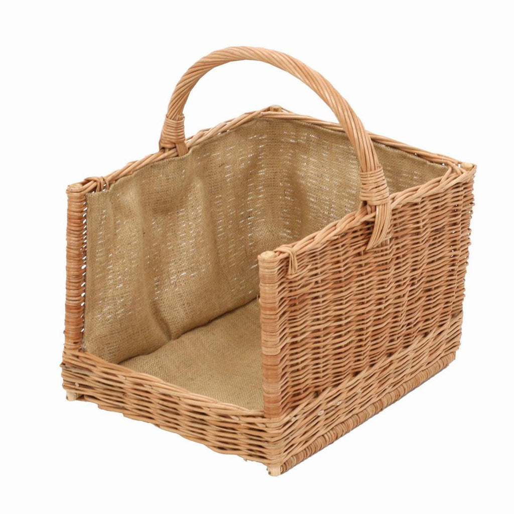 - Brennholzkorb aus europäischer Weide mit rechteckigem Jutefutter