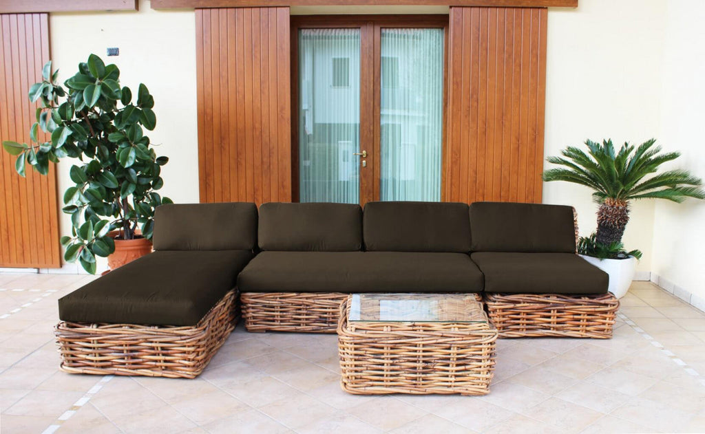 Polinesia Chaiselongue mit Kissen 75 x 87 x 170 cm aus braunem Rattan
