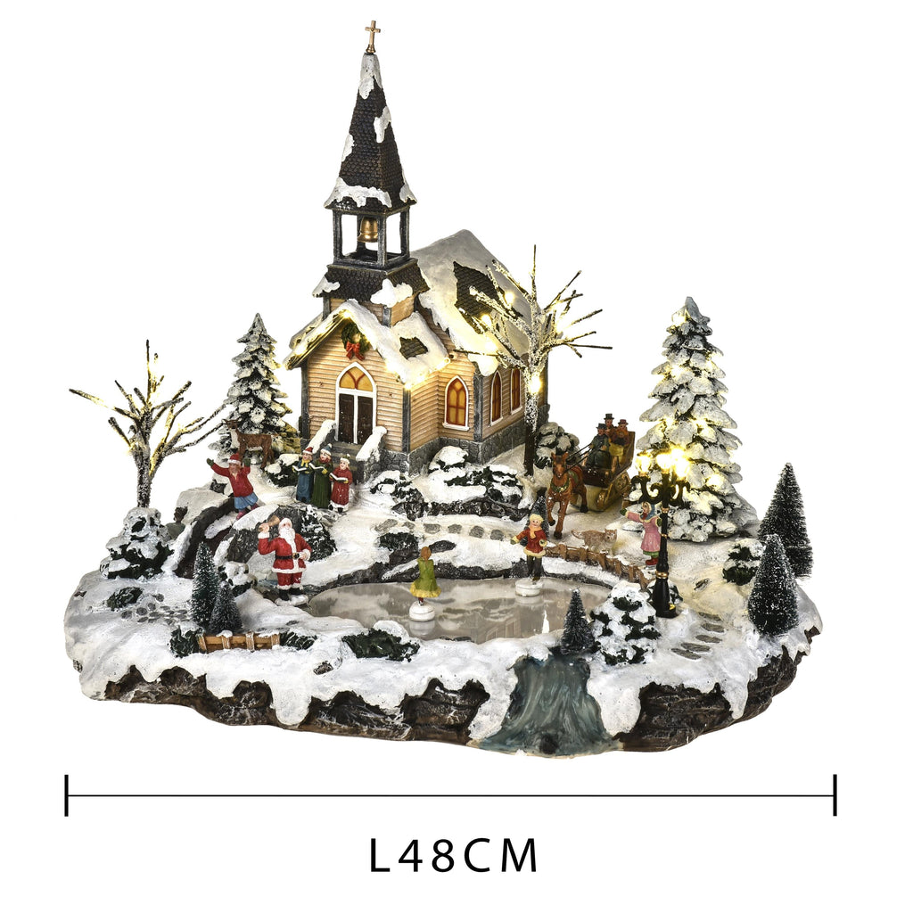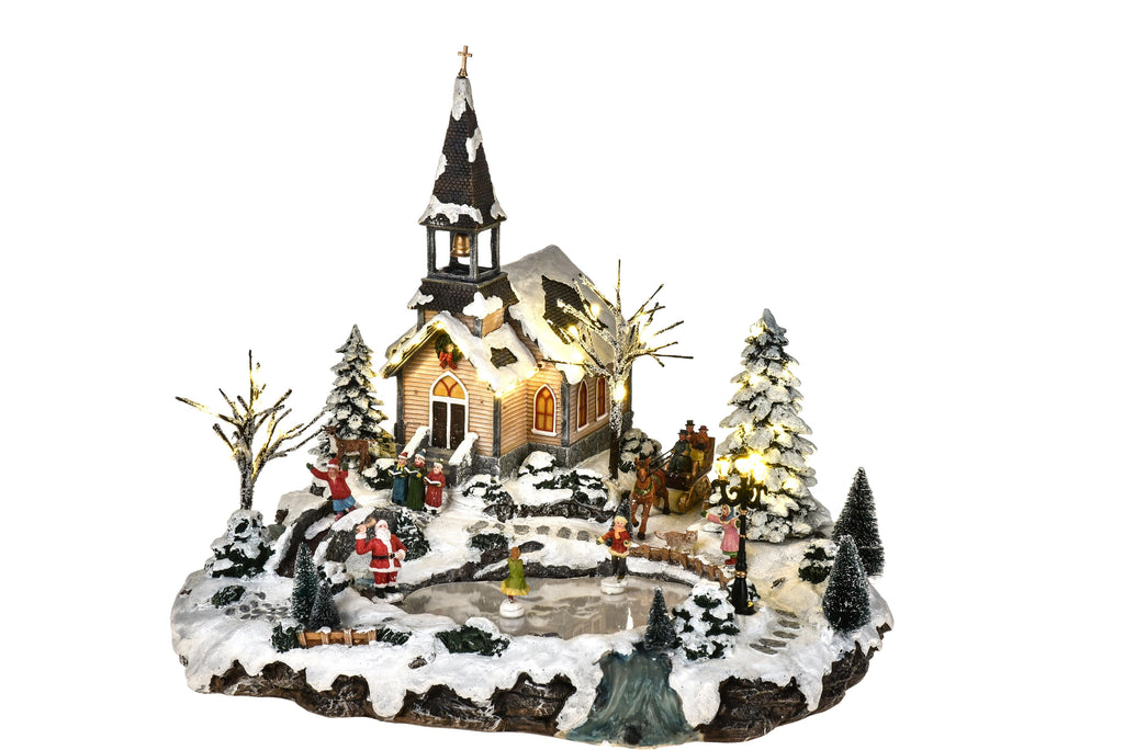 Kirche mit Teich Bewegung von Licht und Musik 48 cm aus Harz