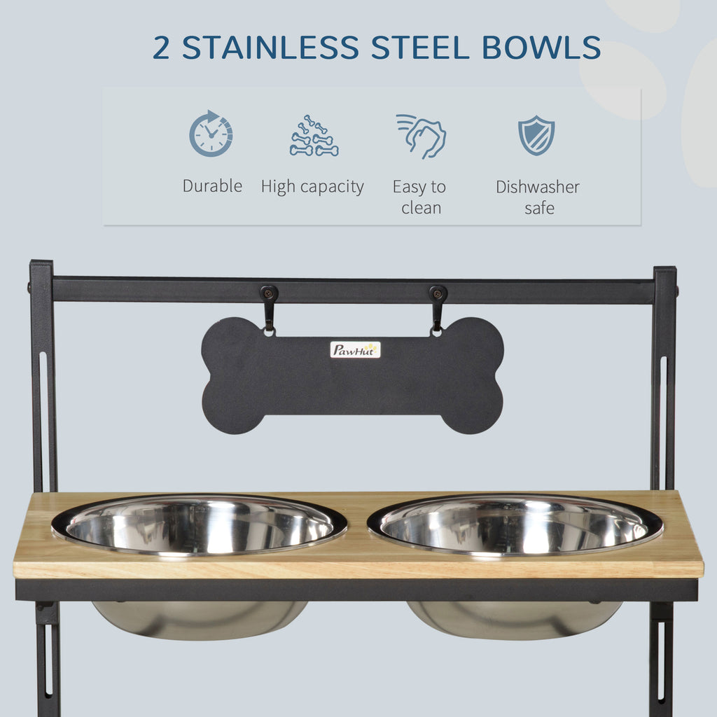 Die erhöhten Hundenäpfe sind für Ihre 4-beinigen Freunde sehr bequem! Die Struktur aus Holz und Stahl sorgt für Stabilität und Langlebigkeit, während die beiden abnehmbaren Hundenäpfe aus Edelstahl rostbeständig und leicht zu reinigen sind. Sie können die Höhe des Napfständers an die Größe Ihres Hundes anpassen, um ein bequemes Fressen zu ermöglichen. Halten Sie große Hunde und kleine Hunde mit diesen Schalen glücklich!