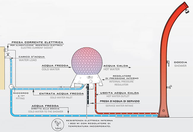 Il collegamento deve essere con una sorgente di acqua fredda sempre aperta e HOT BALL deve essere posizionata in un luogo assolato per la maggior parte di ore al giorno, per consentire un riscaldamento ottimale dell'acqua.