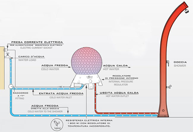 Il collegamento deve essere con una sorgente di acqua fredda sempre aperta e HOT BALL deve essere posizionata in un luogo assolato per la maggior parte di ore al giorno, per consentire un riscaldamento ottimale dell'acqua.