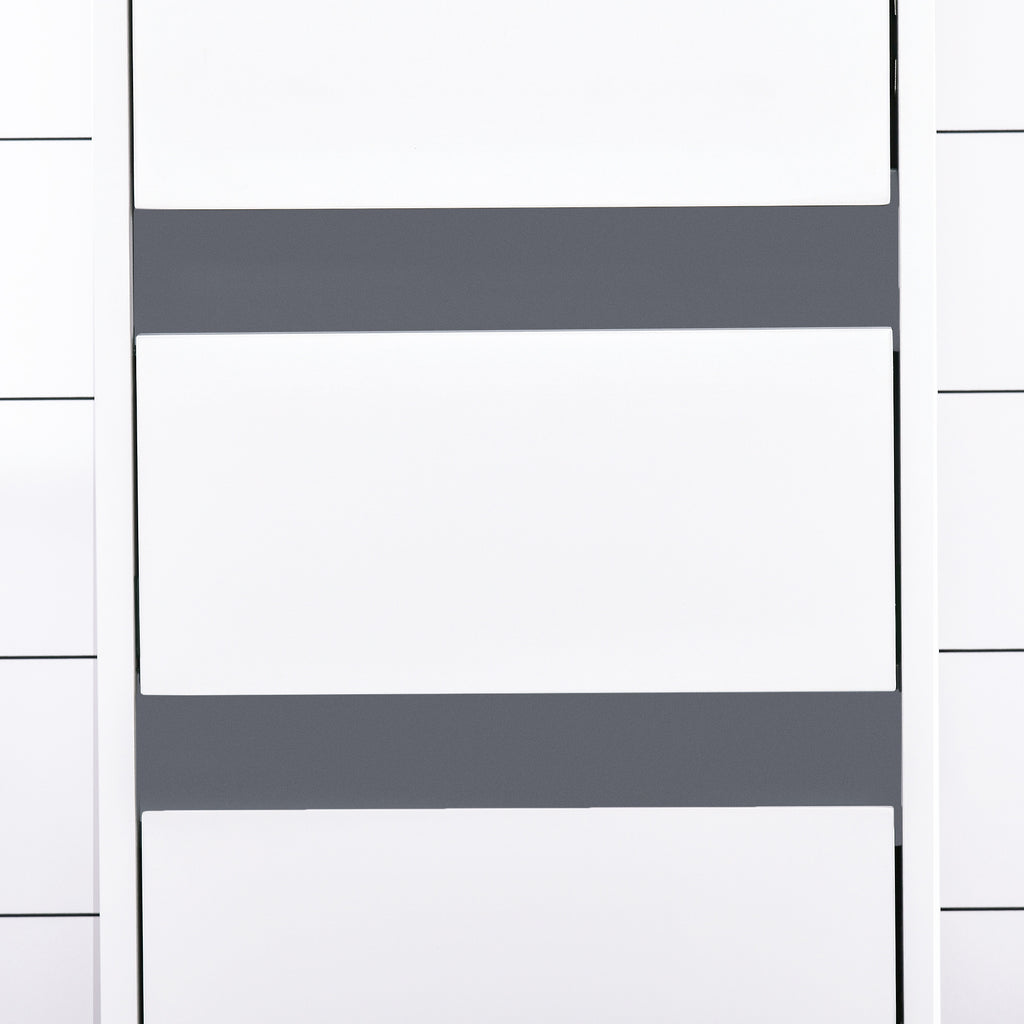 Porta un'atmosfera ordinata nei tuoi spazi con questa colonna bagno in stile minimal e dotata di 2 grandi armadietti e di un cassetto centrale a scomparsa per regalare un look ordinato. All'interno degli armadietti è presente un ripiano regolabile per riporre prodotti da bagno di tante dimensioni diverse. Realizzato con pannelli di truciolato, l'armadietto si rivela solido e durevole per garantirti un uso affidabile. La struttura è rifinita con delle pratiche cinghie sul retro.