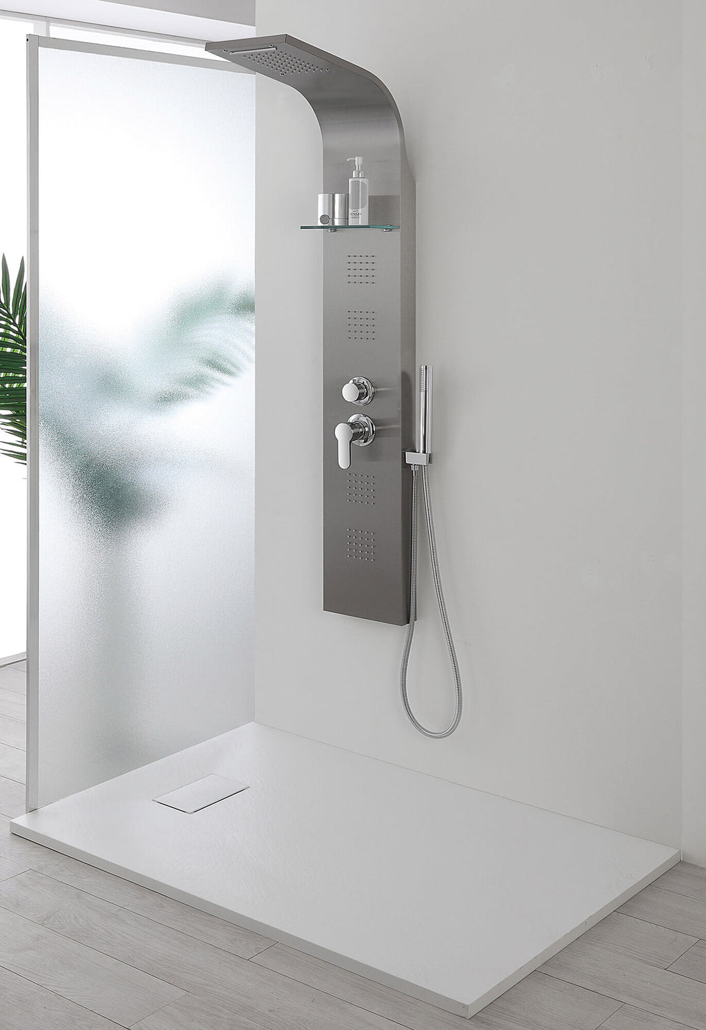 - Duschsäule aus satiniertem Edelstahl