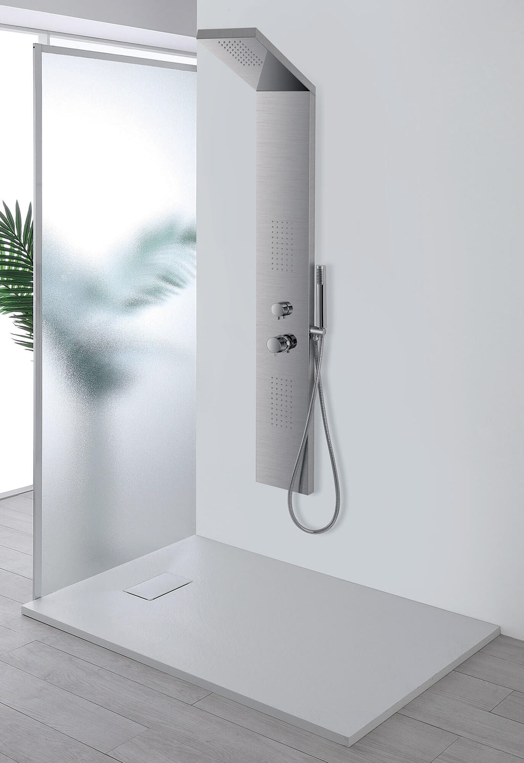 Hydromassage-Duschsäule aus satiniertem Stahl
