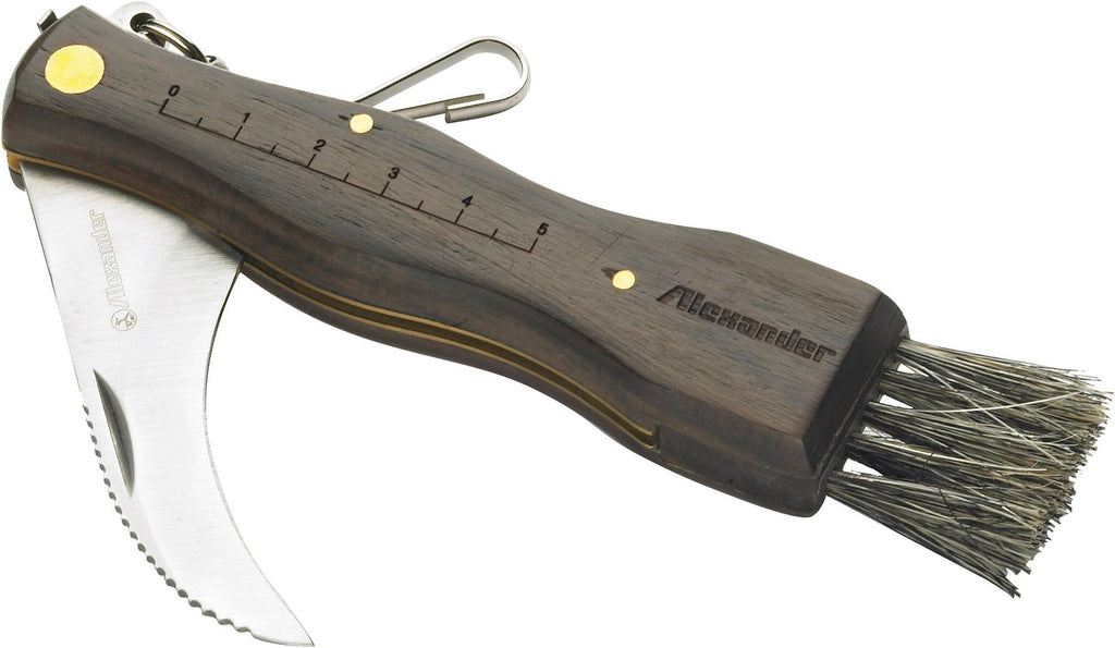 Pilzmesser mit gebogener Klinge und Alexanderbürste