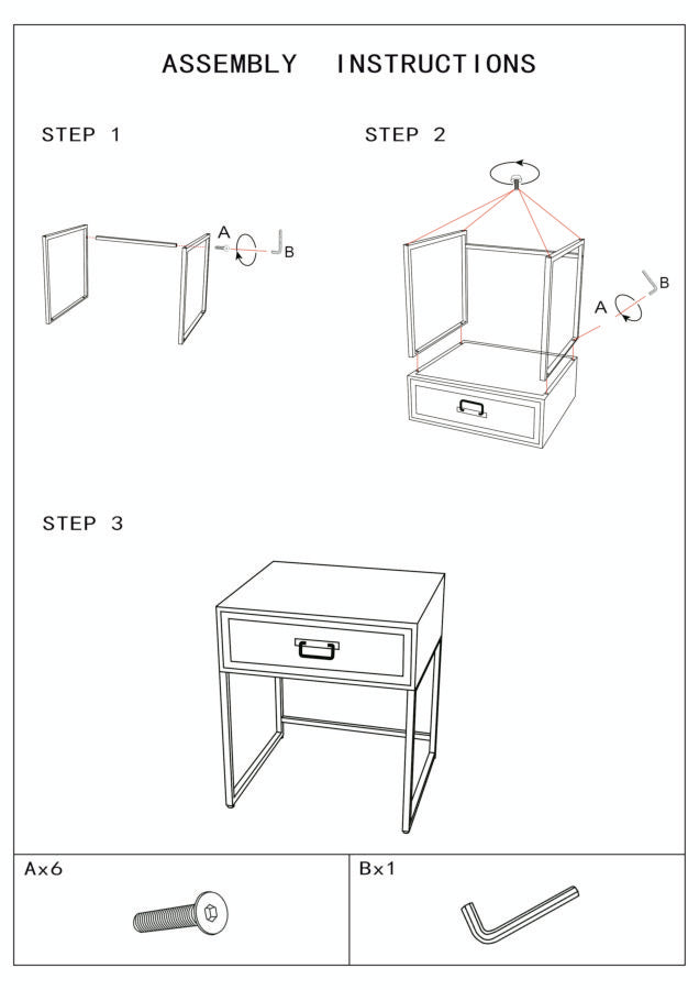 Nachttisch 1 Schublade 45x40x51,5 cm in Metall und Holz