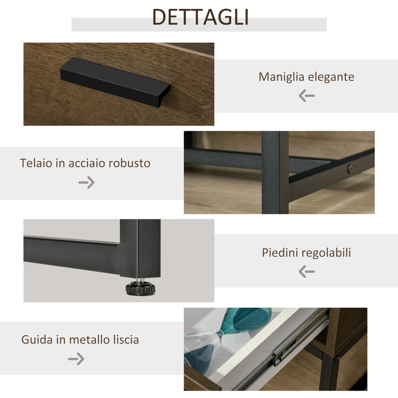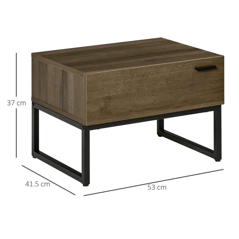 Nachttisch 1 Schublade 53x41,5x37 cm in Holz und braunem Stahl