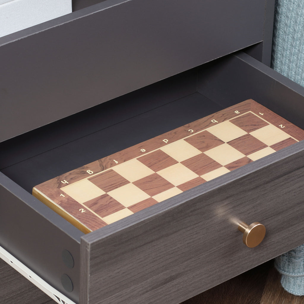 Nachttisch 2 Schubladen und Rollen mit anhebbarer Platte 50 x 40 x 50 cm in grauem Holz