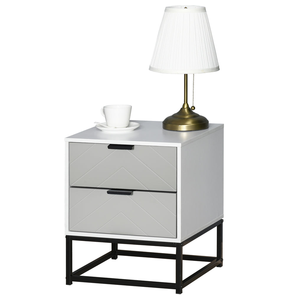 Nachttisch 39,5x40x48 cm 2 Schubladen aus MDF und weißem und grauem Stahl