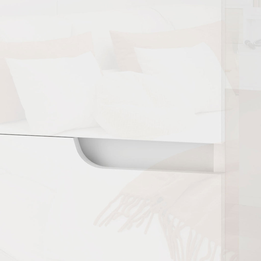 La finitura lucida del comodino aggiunge un tocco di stile alla camera da letto. I cassetti senza maniglie offrono un aspetto minimal e pulito. Le guide in acciaio a tre sezioni del comodino con cassetti sono scorrevoli e in grado di reggere tanto peso. Due cassetti massimizzano lo spazio disponibile. Il pannello di truciolato con superficie in melamina del comodino per camera da letto resiste a graffi e usura. I piedini proteggono il pavimento da danni. Utilizzabile anche come tavolino in soggiorno, studio o ingresso di casa. Montaggio richiesto.