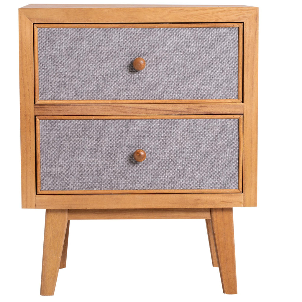 Holz Nachttisch 2 Schubladen Holz und Grau 44x30x55 cm