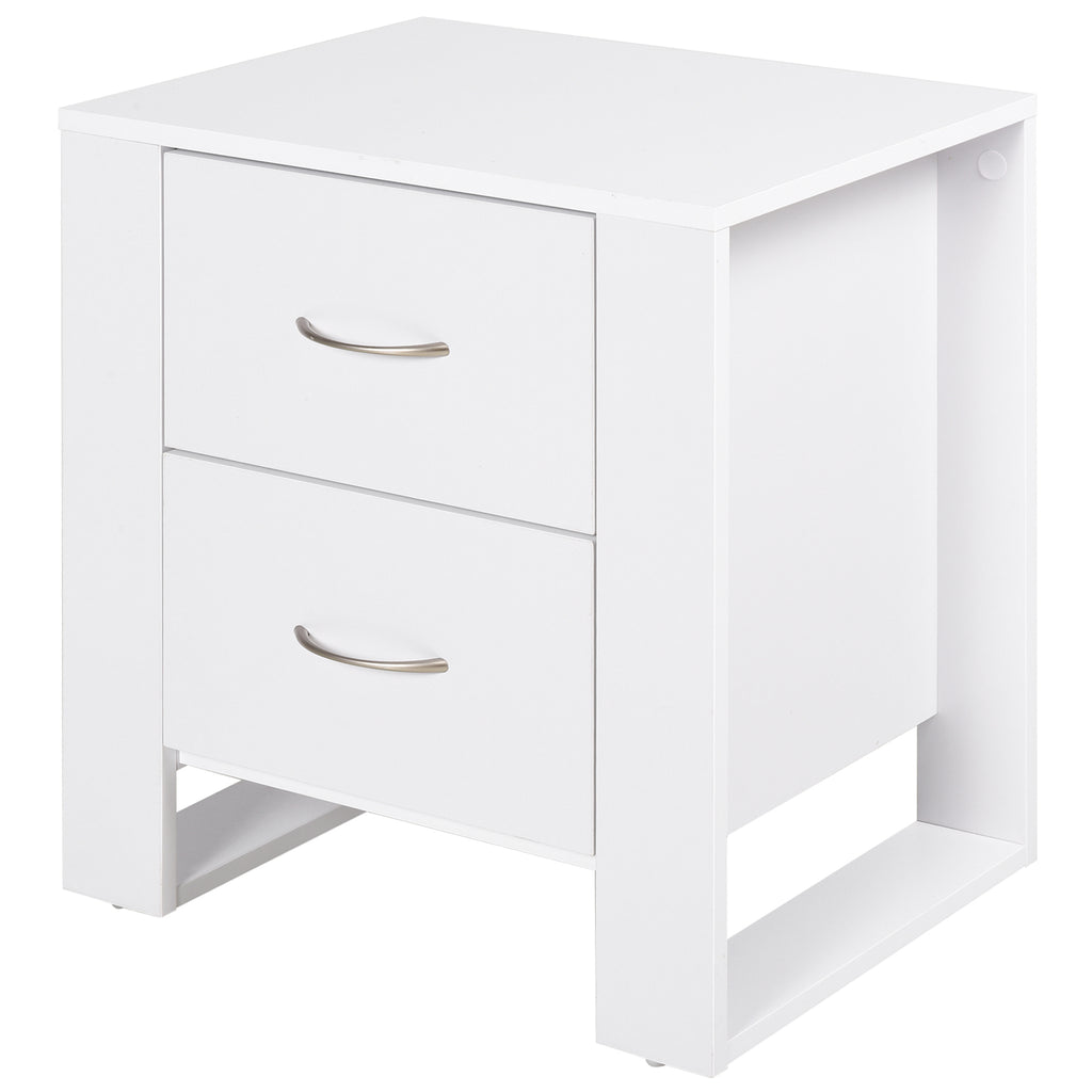 Comodino Moderno con 2 Cassetti per Camera da Letto 48x39x54 cm in Legno Bianco