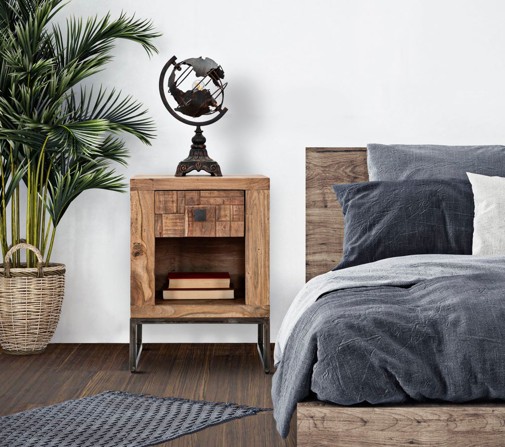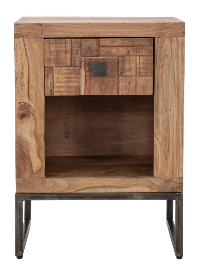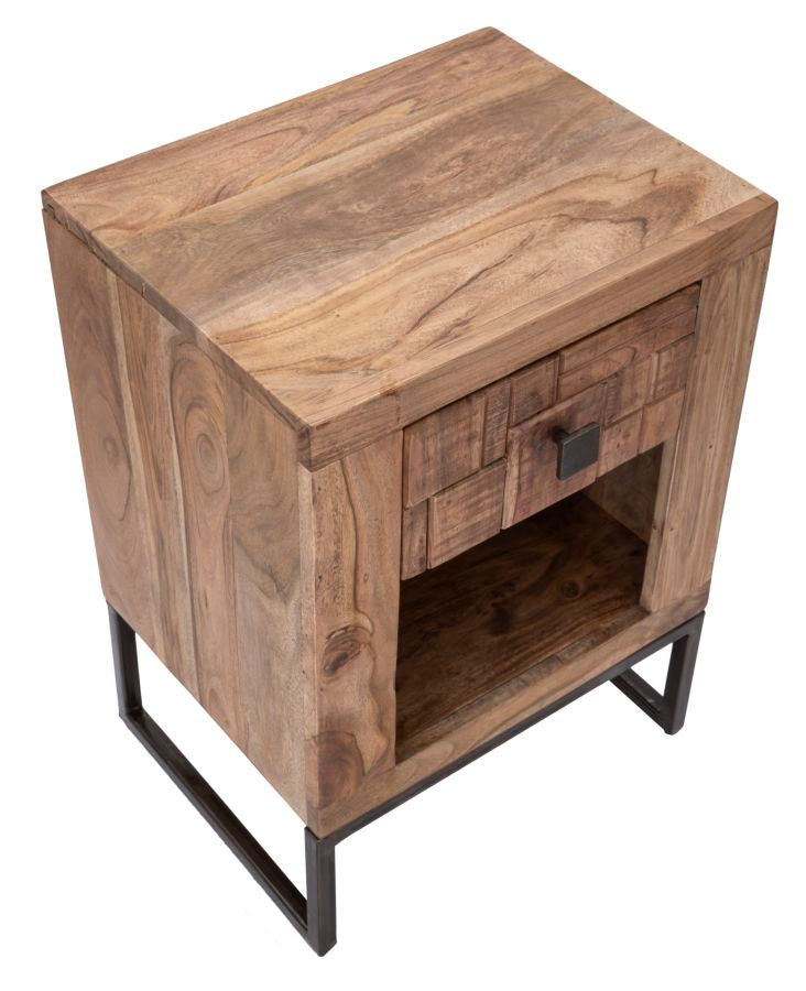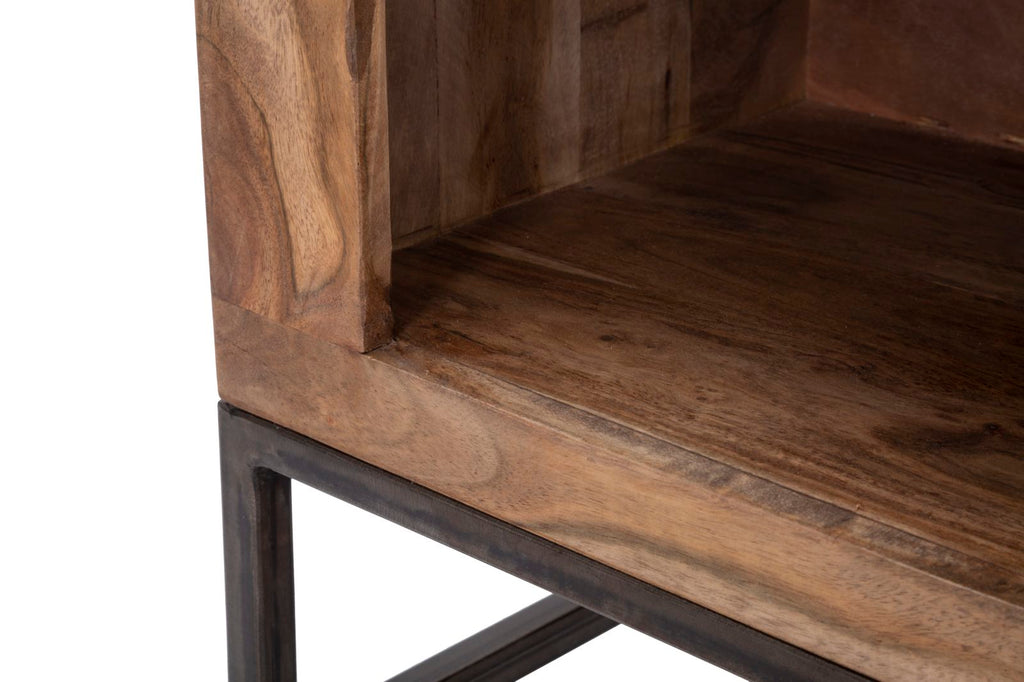 Mumbai Nachttisch 45x35x62 cm aus Akazienholz und braunem und schwarzem Eisen