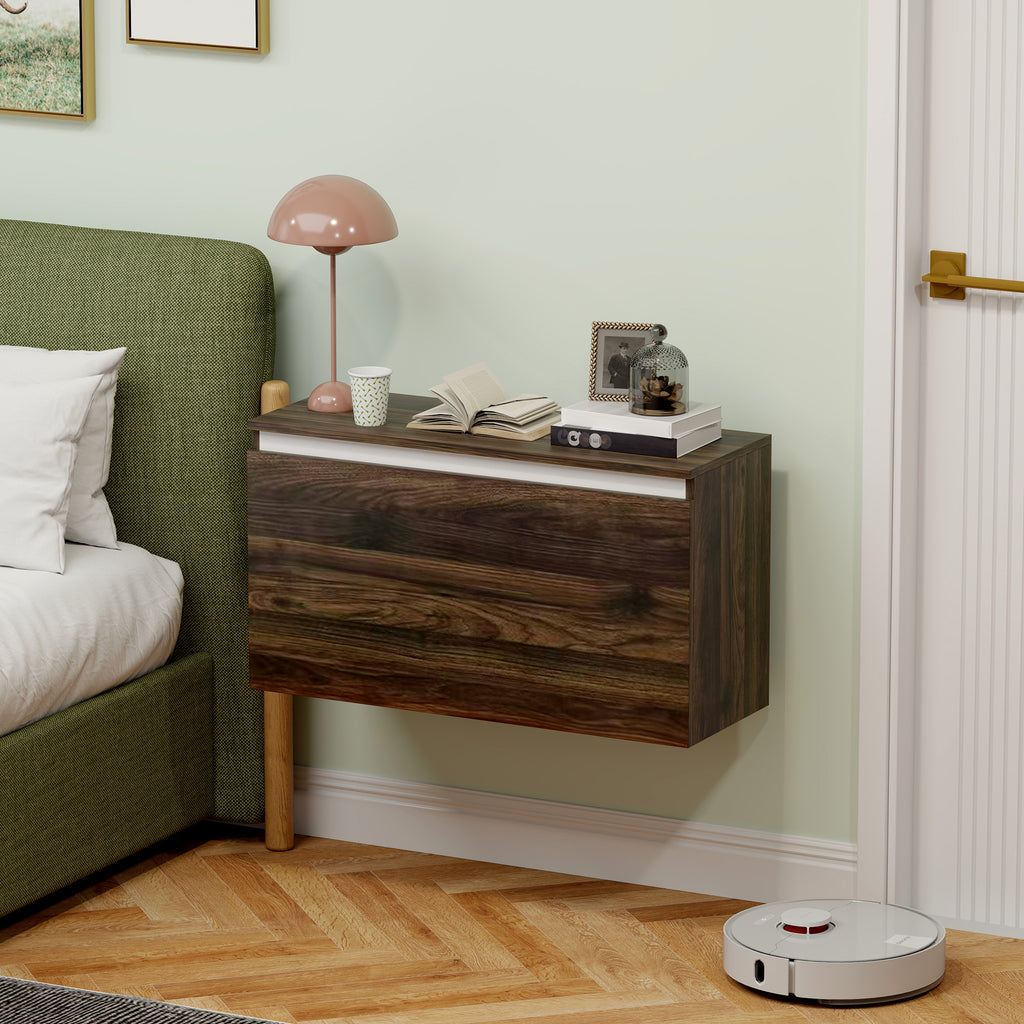 Comodino Sospeso 80x30x45 cm con Cassetto Senza Maniglie Noce