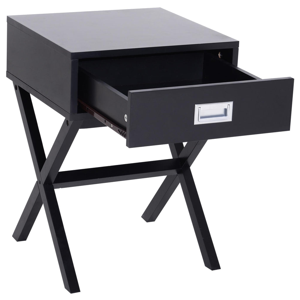 Nachttisch im Industriestil mit Schublade aus schwarzem Holz 40x40x55 cm