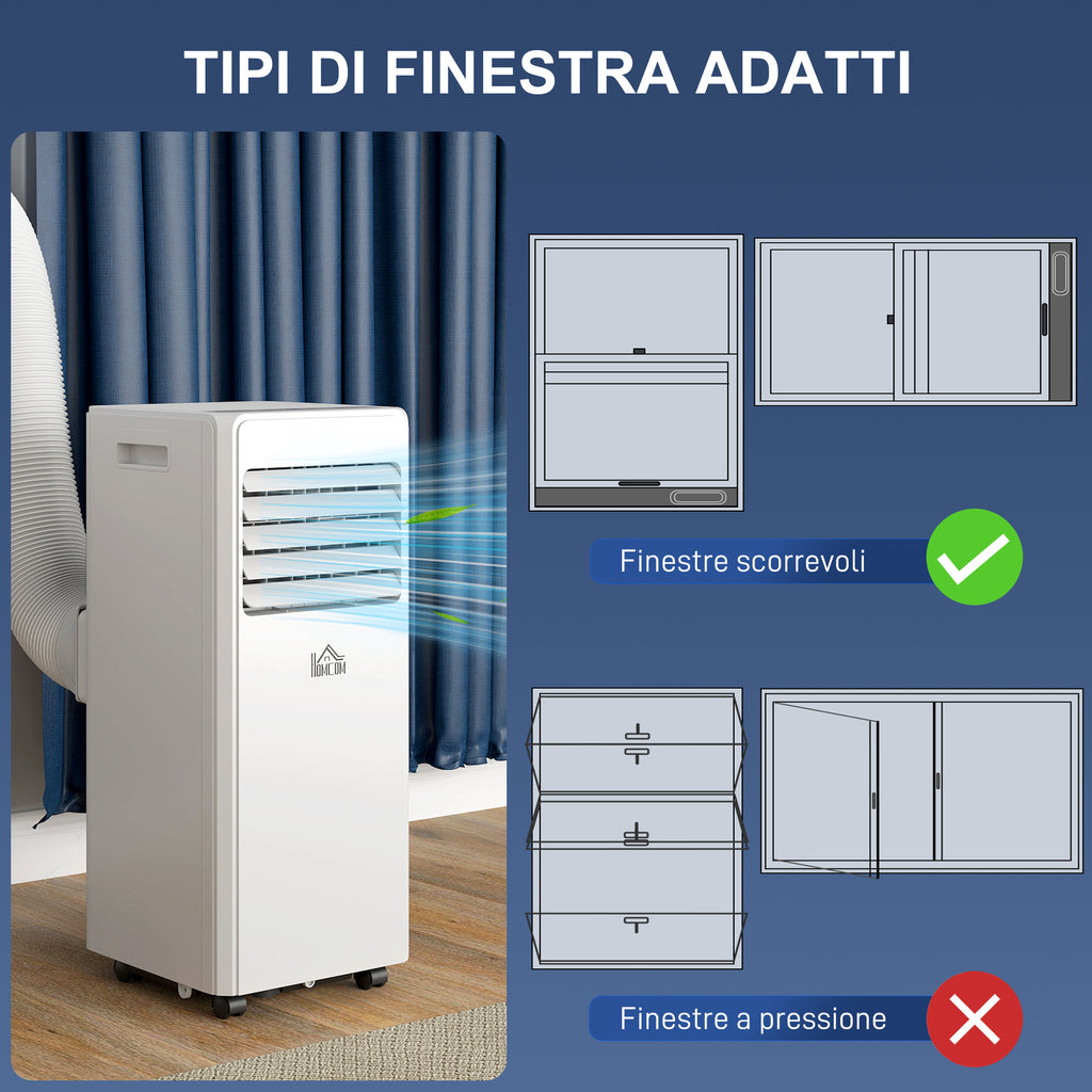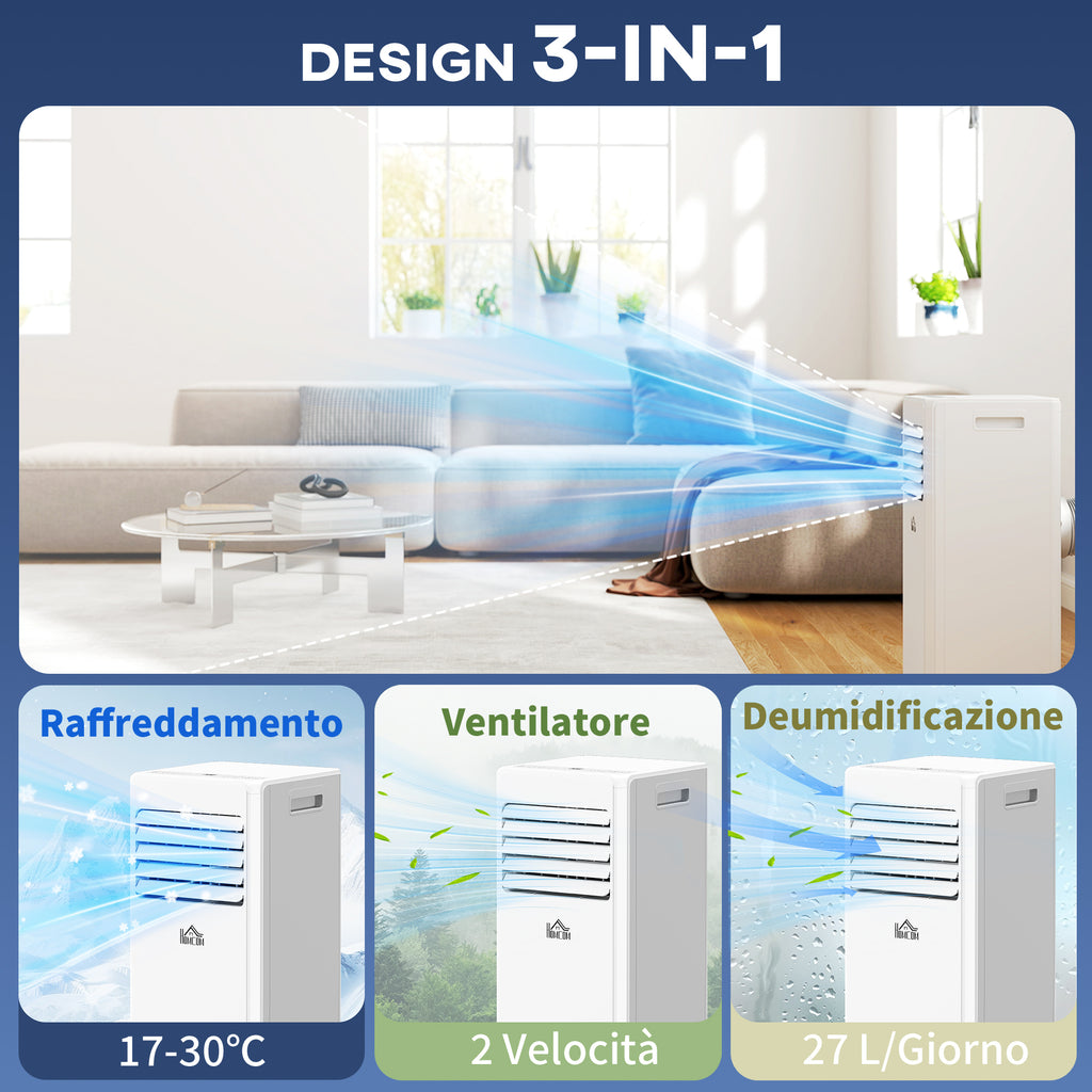 Condizionatore Portatile 3 in 1 con Deumidificatore 29,2x32x71 cm Timer 24 Ore e Telecomando in Plastica ABS Bianco