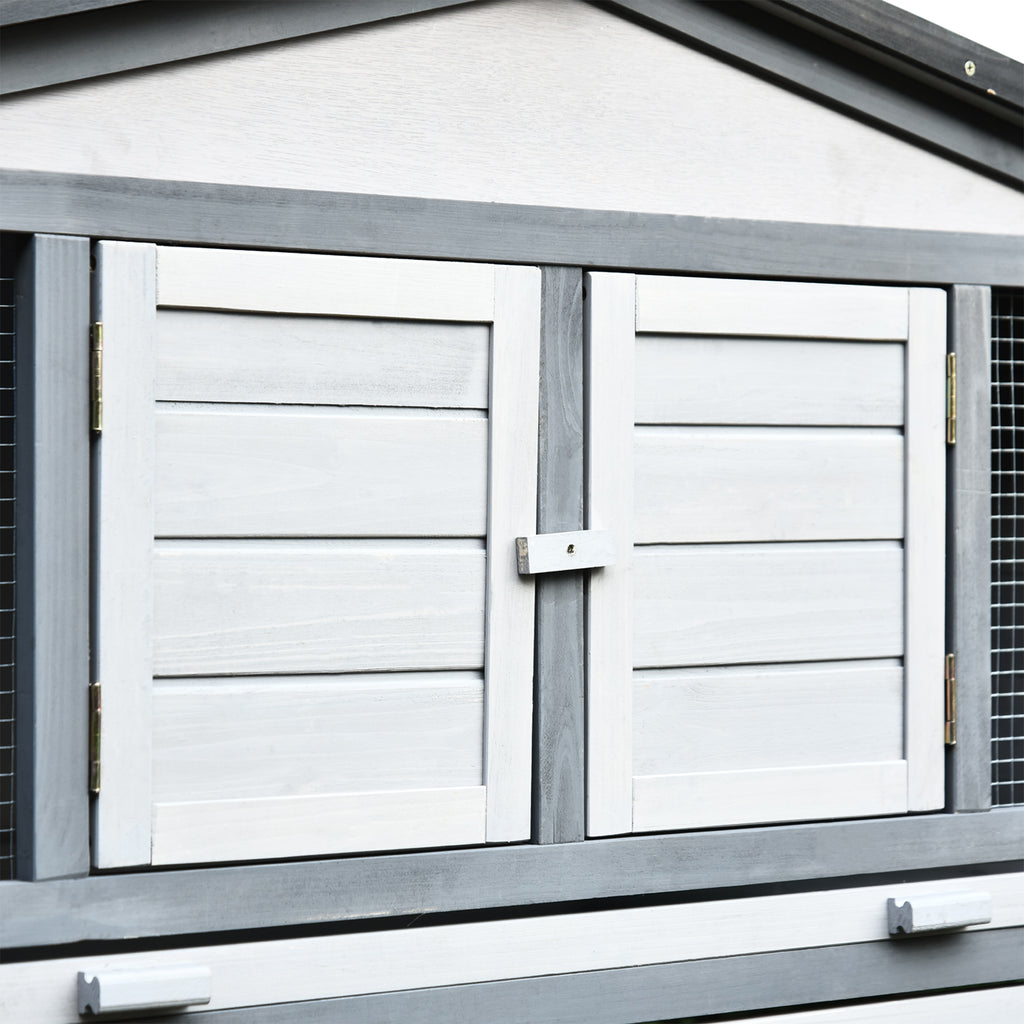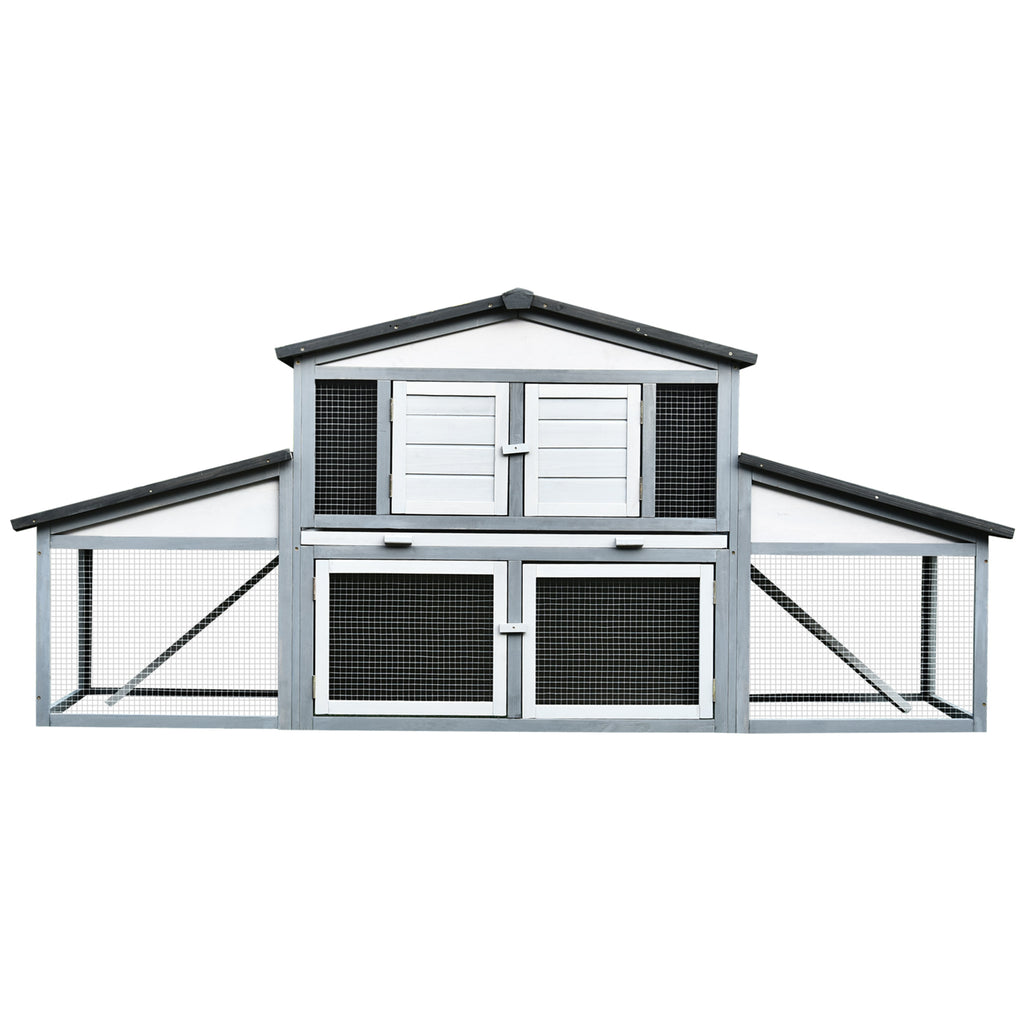 Kaninchenstall für den Außenbereich 225 x 70 x 100 cm aus grauem und weißem Holz