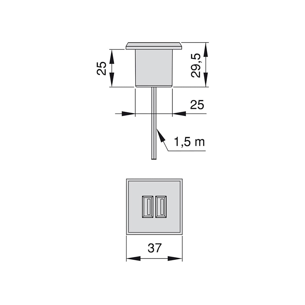 Praktischer USB-Anschluss zum Einbau in die Möbel des Hauses: in der Küche, im Wohnzimmer oder im Büro. Entwickelt, um elektronische Geräte wie Tablets oder Smartphones diskret und einfach aufzuladen , da die USB-Anschlüsse dank der vollständigen Integration in das Mobiltelefon leichter zugänglich sind.