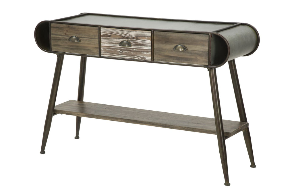Konsole aus Metall und Holz mit 3 Schubladen und Regal. Möbel, die eine große visuelle Wirkung haben und die jede Umgebung originell und unterirdisch machen, ohne auf Praktikabilität zu verzichten.
