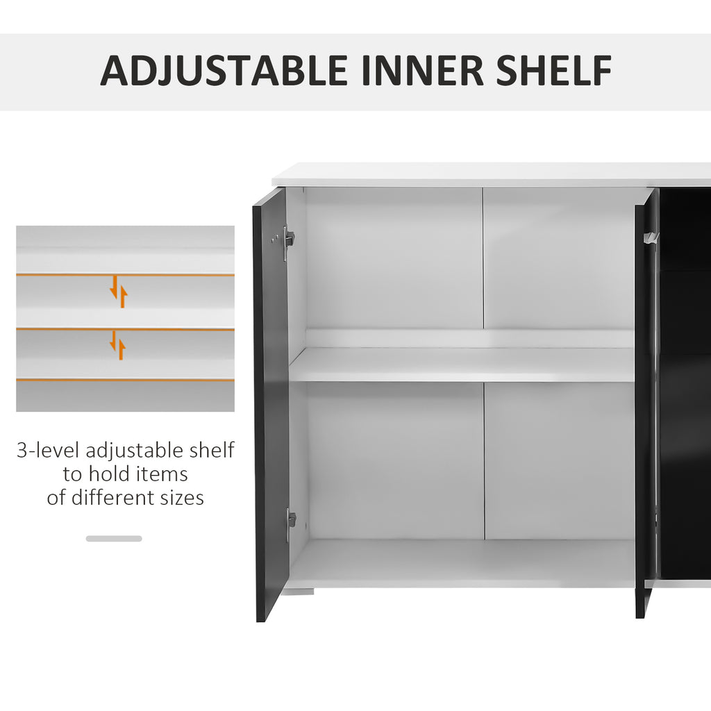 Konsole 3 Türen 2 Schubladen 106 x 76 x 35 cm in glänzendem Schwarz