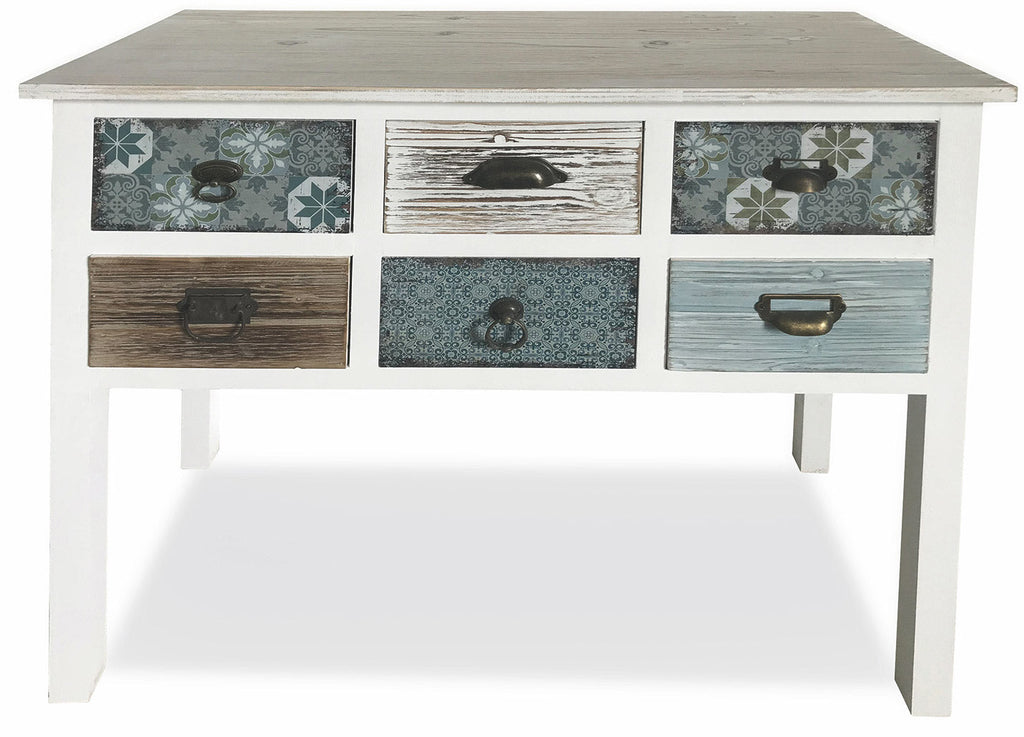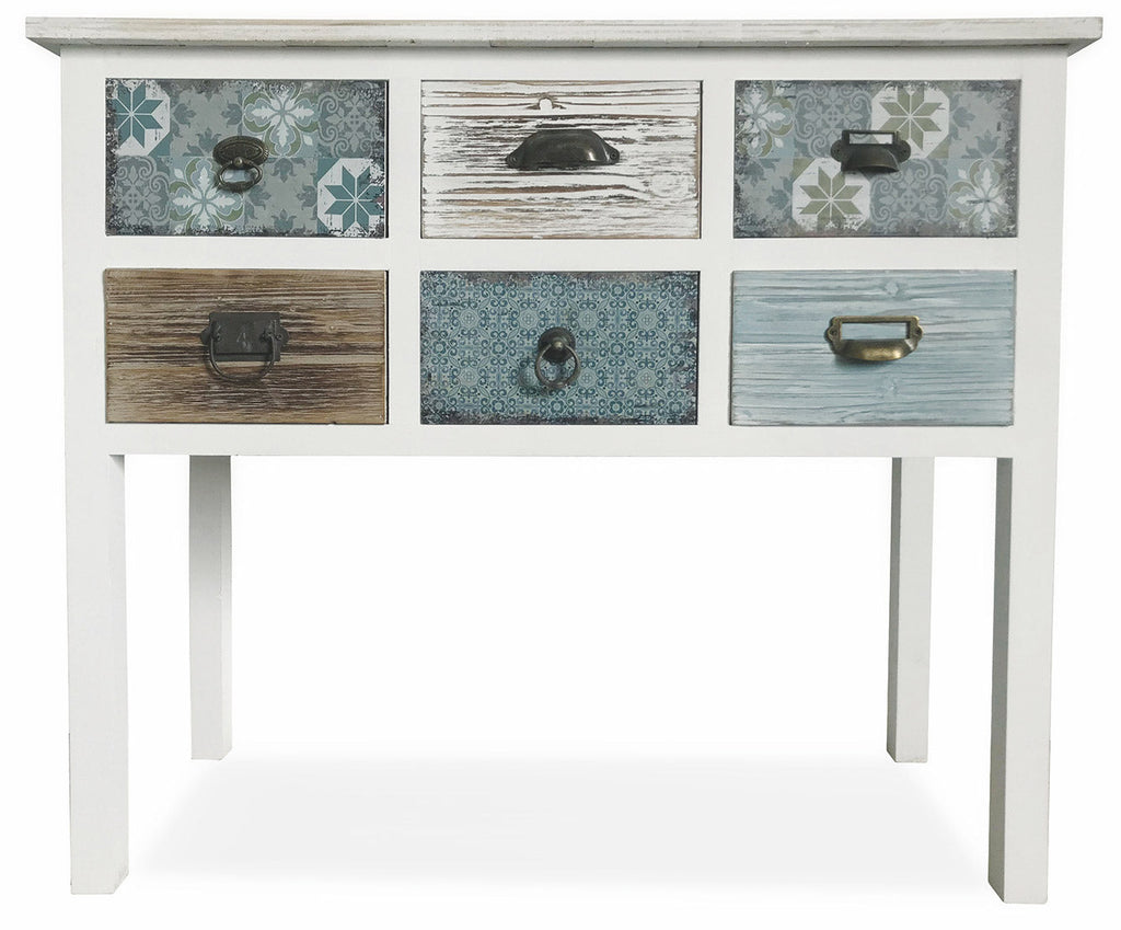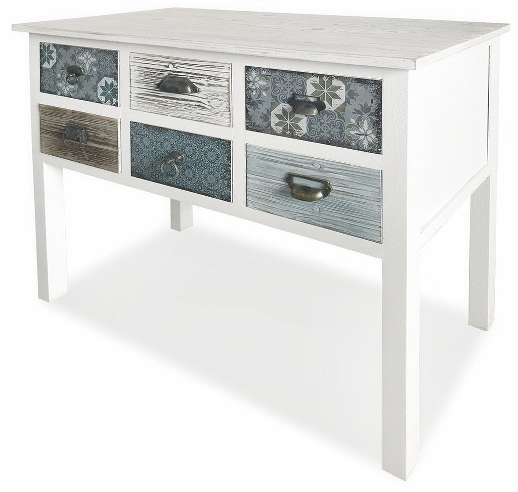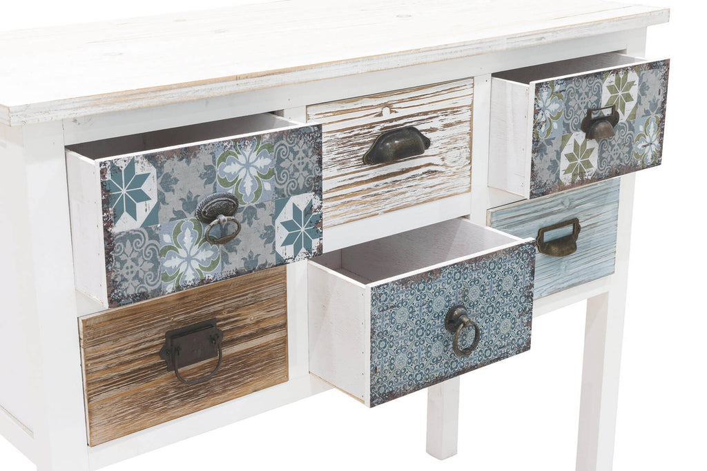 Konsole mit 6 Schubladen 90 x 38 x 78,5 cm aus antikem weißem Soriani-Holz