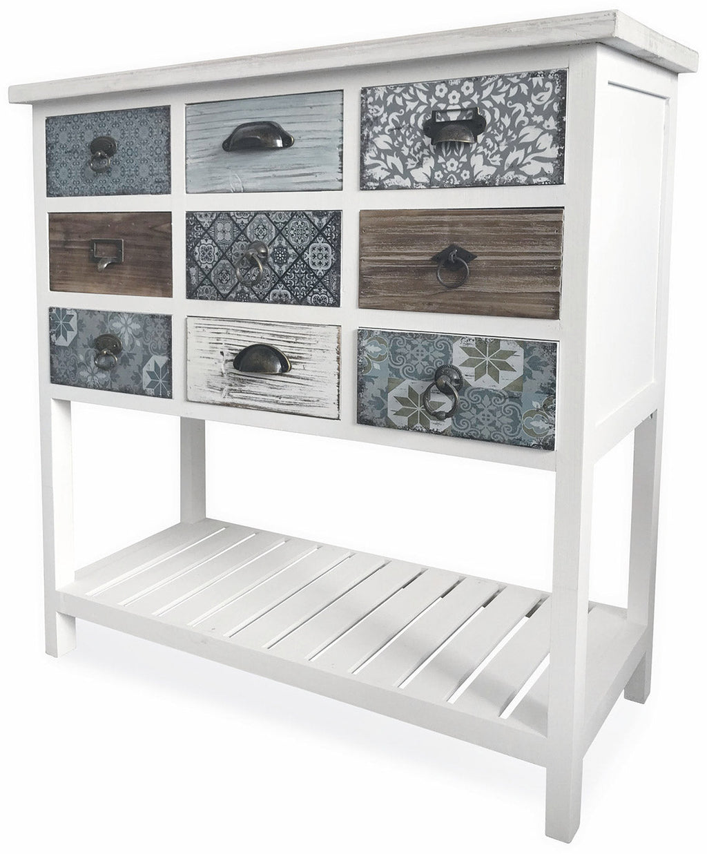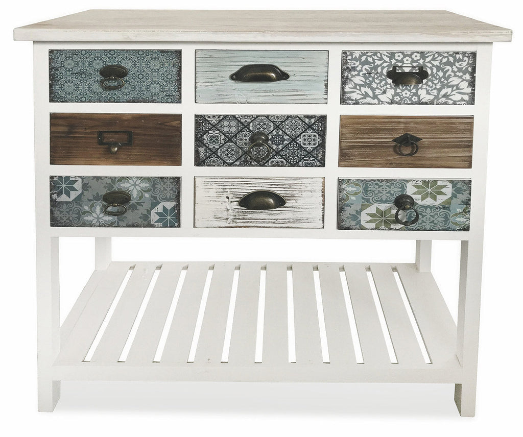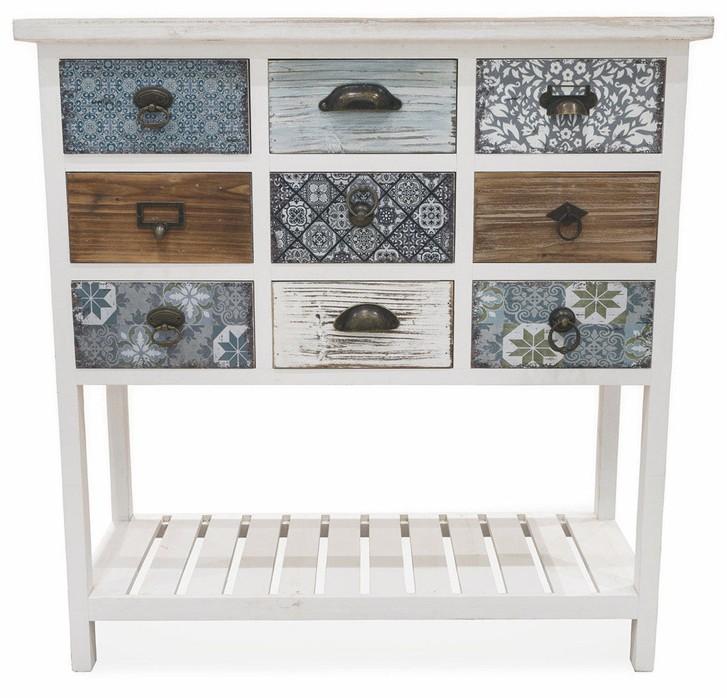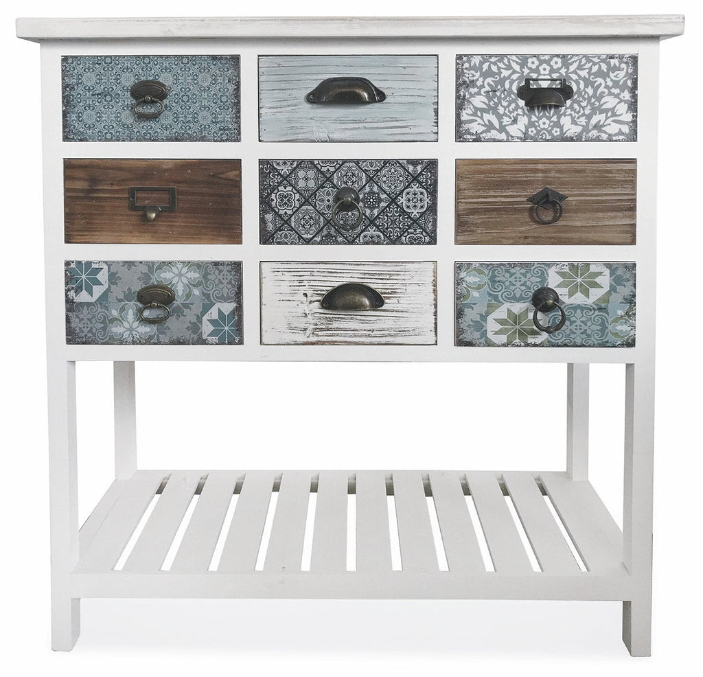 Technische Merkmale Konsole 9 Schubladen mit Korbhalter 80 x 32,5 x 82 cm aus antikem weißem Soriani-Holz