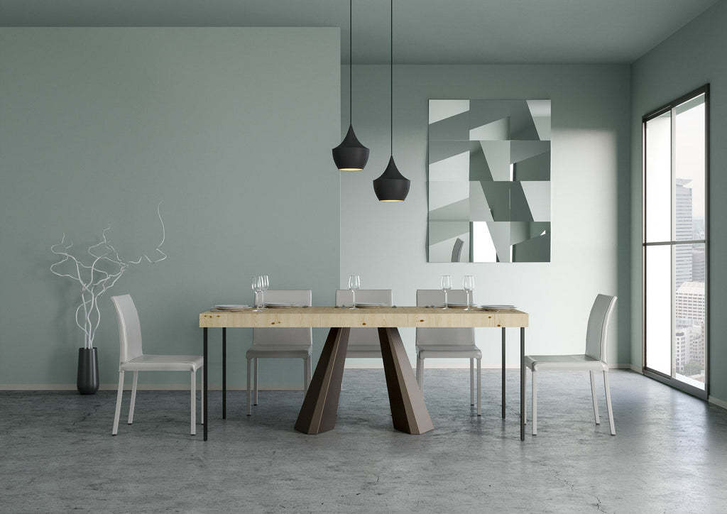 Consolle Allungabile Diamante Premium Small con piano e allunghe a Folding con bordo alto 8 cm Una Consolle estremamente stabile, robusta, elegante e dal design originale. Tavolo originale e di grande impatto. Dalle linee pulite e di grande impatto, i due materiali impiegati si fondono in un'armoniosa combinazione. Composta essenzialmente da due parti: la struttura portante in metallo verniciato il piano superiore allungabile con sistema di guide in alluminio ad elevata scorrevolezza. Spazioso e robusto, il piano è supportato da due sistemi di appoggio che andranno inseriti alle estremità mediante appositi meccanismi di bloccaggio. Dotata di elaborate allunghe di tipo Folding. La Consolle Diamante può in un attimo trasformarsi in un piano di 2 metri nelle occasioni più importanti.