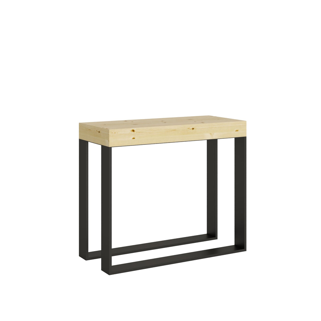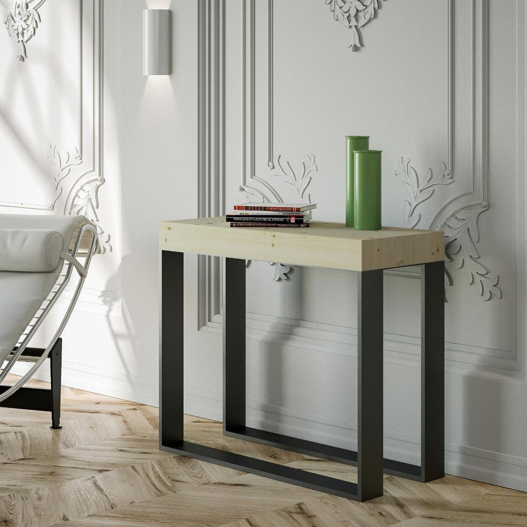 Consolle Elettra Small Premium. La Consolle Elettra Small Premium n listellare di Abete non è solo un elemento d'arredo. Pratica e funzionale grazie alla possibilità di allungarla fino a 190 cm. si trasforma rapidamente in un tavolo multifunzione, un tavolo da pranzo, un tavolo da lavoro, un tavolo per il soggiorno. La Consolle, da chiusa può essere collocata facilmente nel tuo ingresso o in ogni angolo della tua casa. Facilmente trasportabile si adatta benissimo in ogni spazio.Un punto di appoggio comodo per lasciare chiavi o altri oggetti quando si entra in casa.Non mancano la robustezza e il design, un insieme di qualità che si fondono nella praticità di un mobile che non ha solo la caratteristica di essere bello.La versatilità della Consolle Elettra Small Premium regala la comodità di trasformare un mobile discreto in un pratico e stabile tavolo da pranzo.Poche e semplici mosse e avrete a disposizione un grande e spazioso tavolo capace di ospitare i vostri amici.Consolle Elettra Small si trasformerà in un tavolo allungabile straordinariamente stabile con il sostegno centrale.Telaio in ferro verniciato.