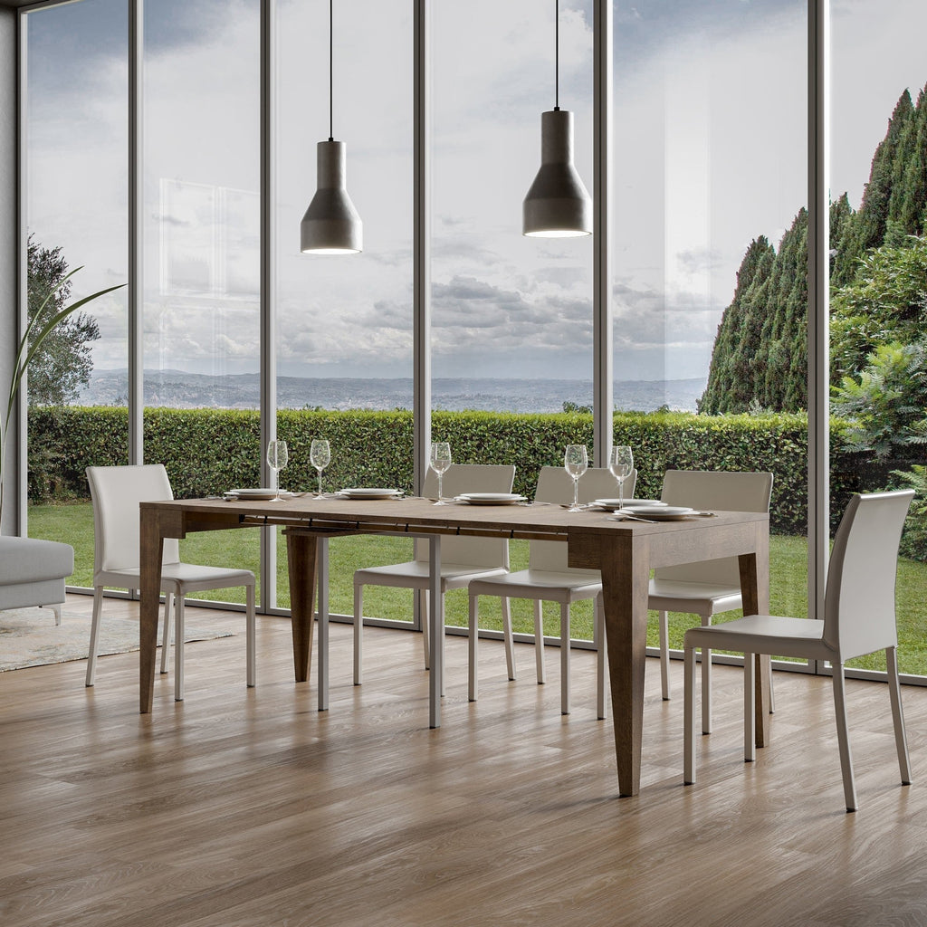 La Consolle Isotta Small è la versione più piccola della Isotta in quanto la sua dimensione massima raggiunge 198 cm con l'utilizzo delle tre allunghe. Realizzata completamente con pannelli nobilitati di legno, Isotta è un oggetto di arredo che permetterà di risolvere tuttii tuoi problemi di spazio. Le allunghe sono da 52 centimetri ognuna e possono essere montate progressivamente. Il sistema di supporto centrale a due gambe è compresa nel prezzo. Consolle allungabile Isotta: realizzata con pannelli in nobilitato, la forma delle sue gambe esprimono eleganza e raffinatezza.