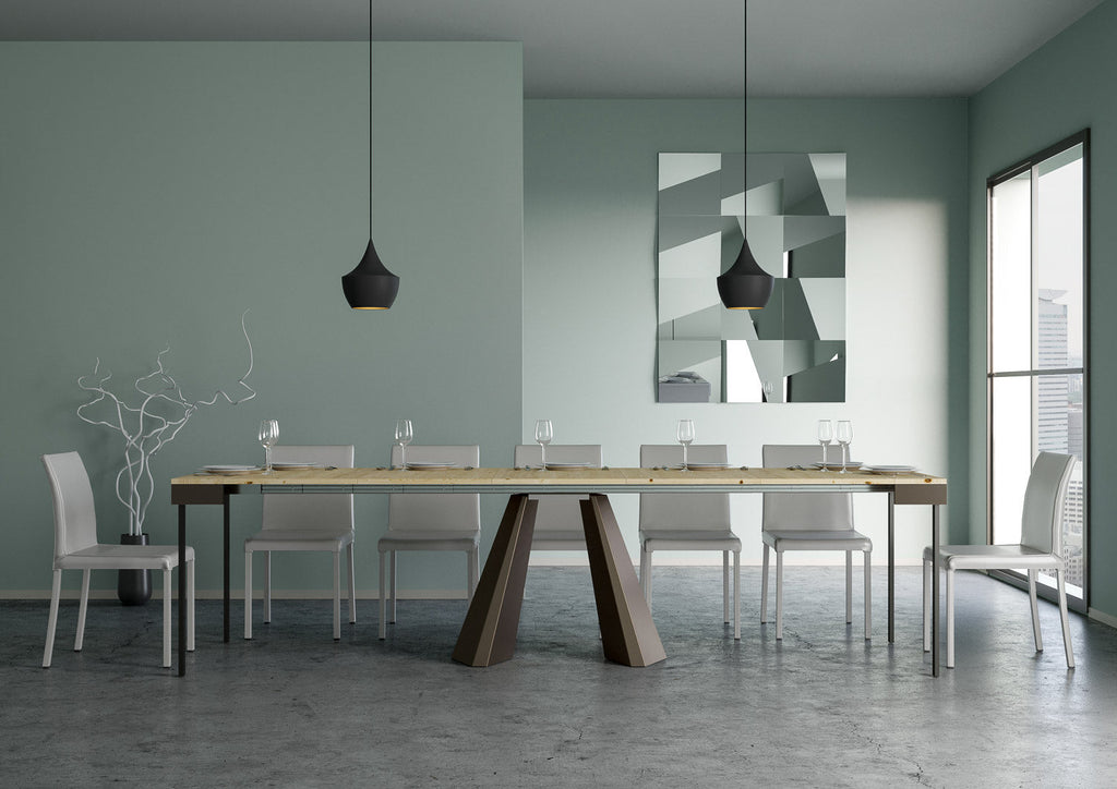Consolle Allungabile Diamante Evolution.Una Consolle estremamente stabile, robusta, elegante e dal design originale. La Consolle ha un bordo perimetRale in ferro verniciato che dona al tavolo una sensazione di robustezza unica nel suo genere. Dalle linee pulite e di grande impatto, i due materiali impiegati si fondono in un'armoniosa combinazione.L'ampio e solido telaio in metallo, costituisce la struttura portante della Consolle stessa.Realizzata interamente in Italia mediante l'utilizzo di materiali 100% italiani.