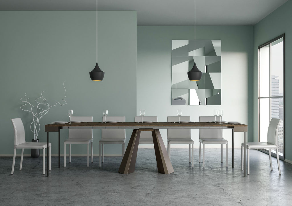 Consolle Allungabile Diamante Evolution.Una Consolle estremamente stabile, robusta, elegante e dal design originale. La Consolle ha un bordo perimetRale in ferro verniciato che dona al tavolo una sensazione di robustezza unica nel suo genere. Dalle linee pulite e di grande impatto, i due materiali impiegati si fondono in un'armoniosa combinazione.L'ampio e solido telaio in metallo, costituisce la struttura portante della Consolle stessa.Realizzata interamente in Italia mediante l'utilizzo di materiali 100% italiani.