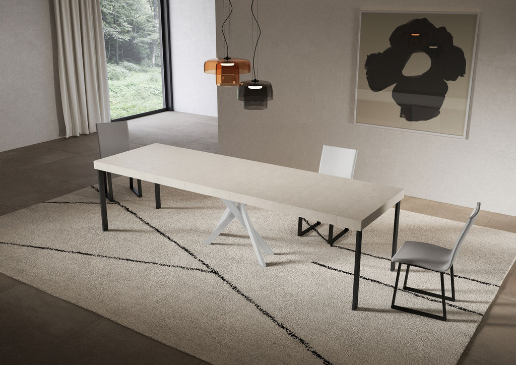 Consolle Allungabile 90-300x40x77 cm Saki Premium Cashmere Gambe Bianche