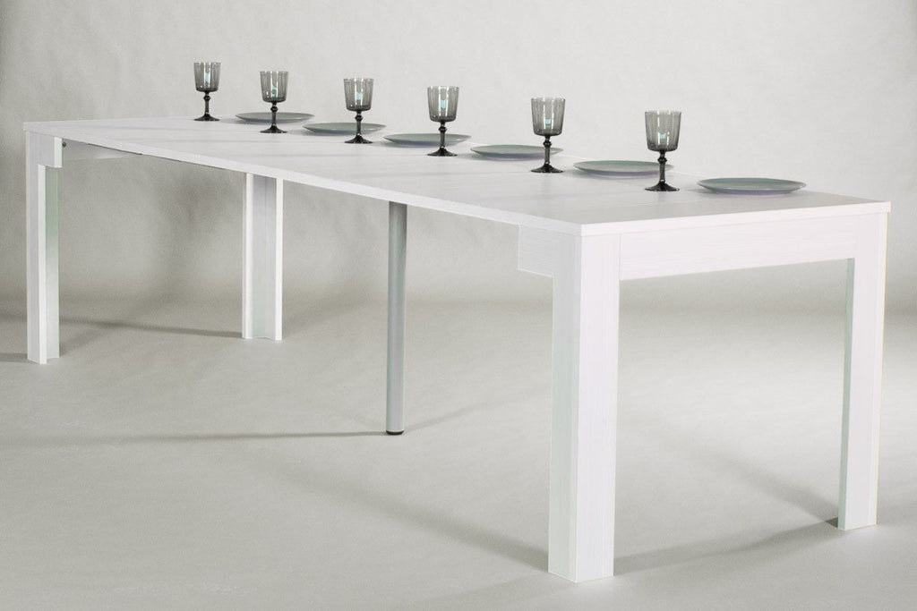 Ausziehbare Holzkonsole H76,5x47x90 / 297cm 5 Verlängerungen Itamoby Magix Glossy White Classic