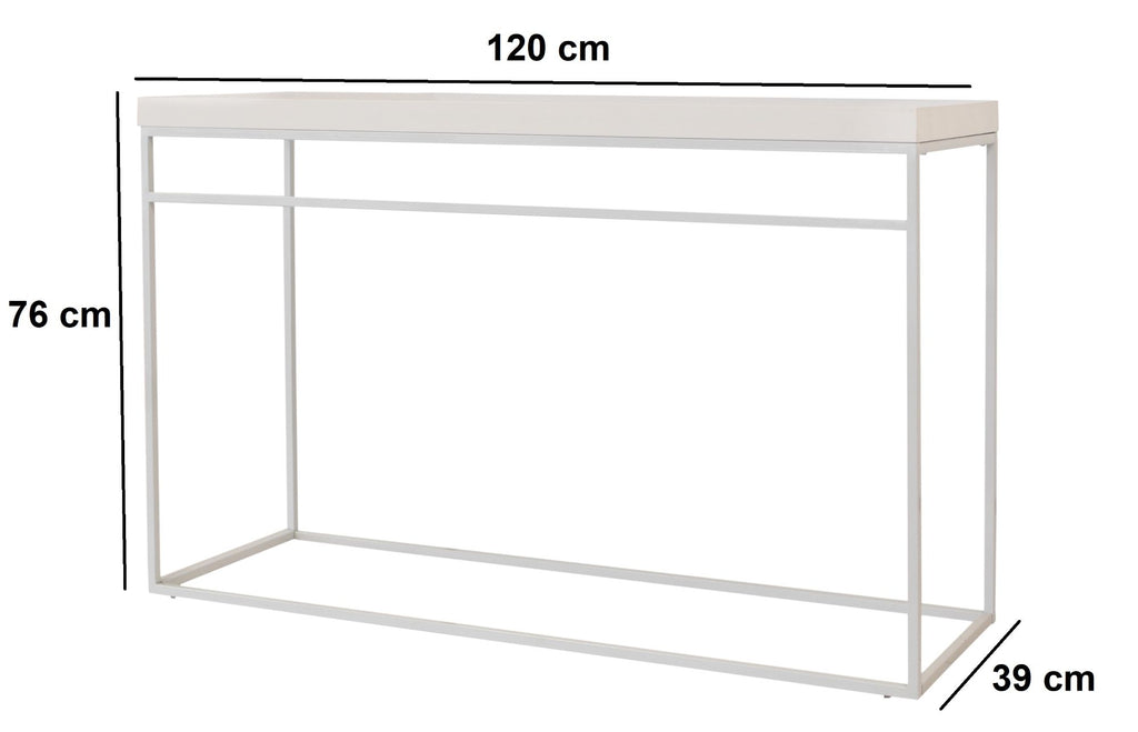 Consolle con struttura in metallo verniciato a polvere color bianco e top in MDF bianco opaco.