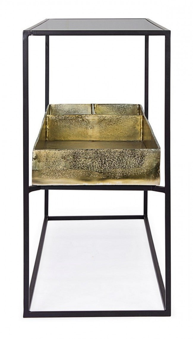 - Piano inferiore con contenitore in Alluminio con Finitura Placcata Ottone ed Anticata