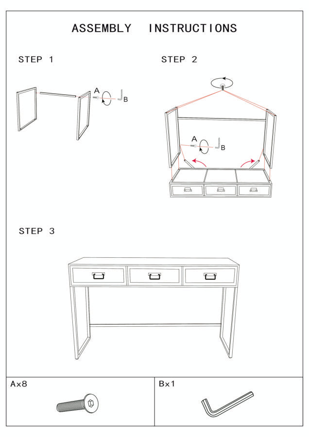 Feste Konsole 3 Schubladen 120x35x78 cm aus Metall und Holz