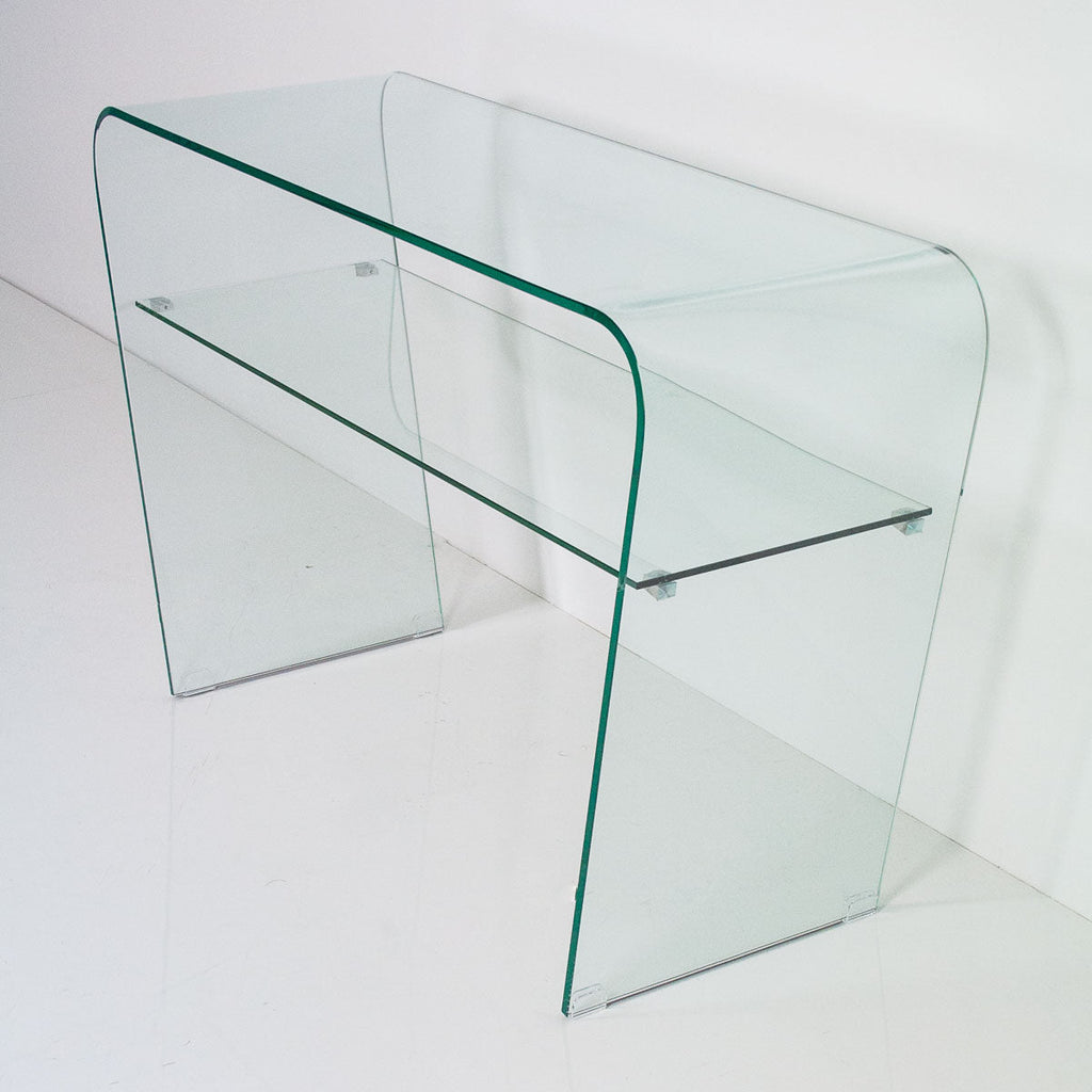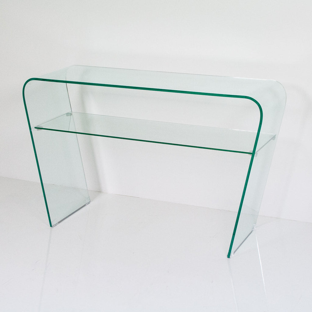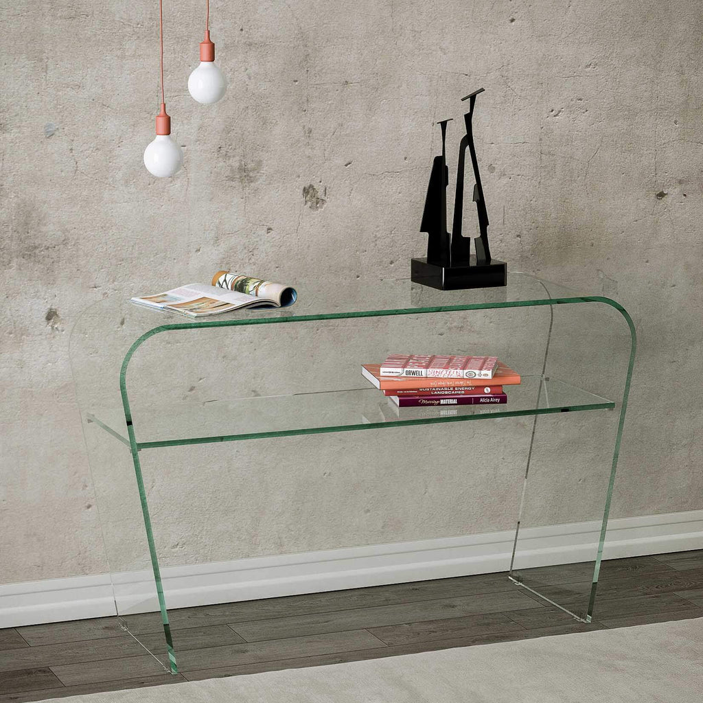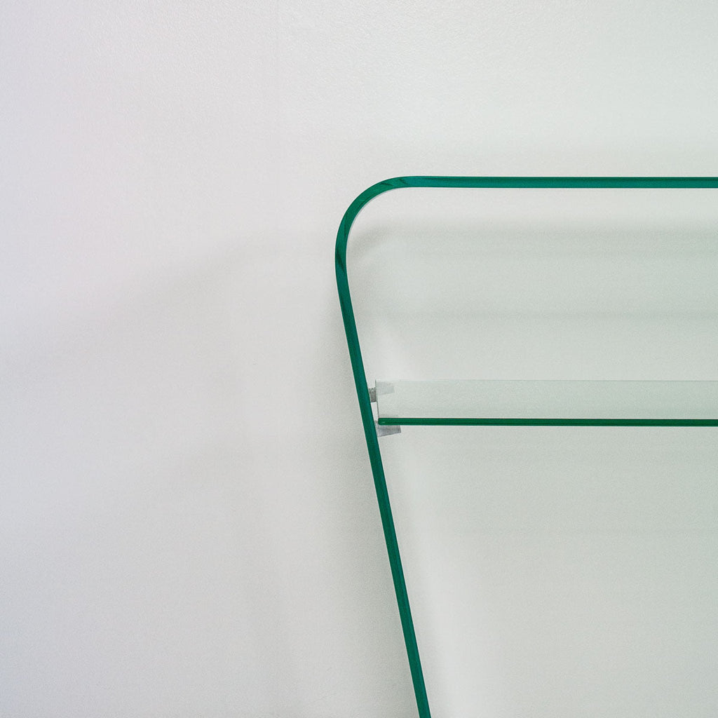 Konsole aus Glas Eta ist eine Konsole aus gebogenem Glas, die jede Art von Zuhause mit der Raffinesse von Glas und der Eleganz seiner Kurven ausstattet.