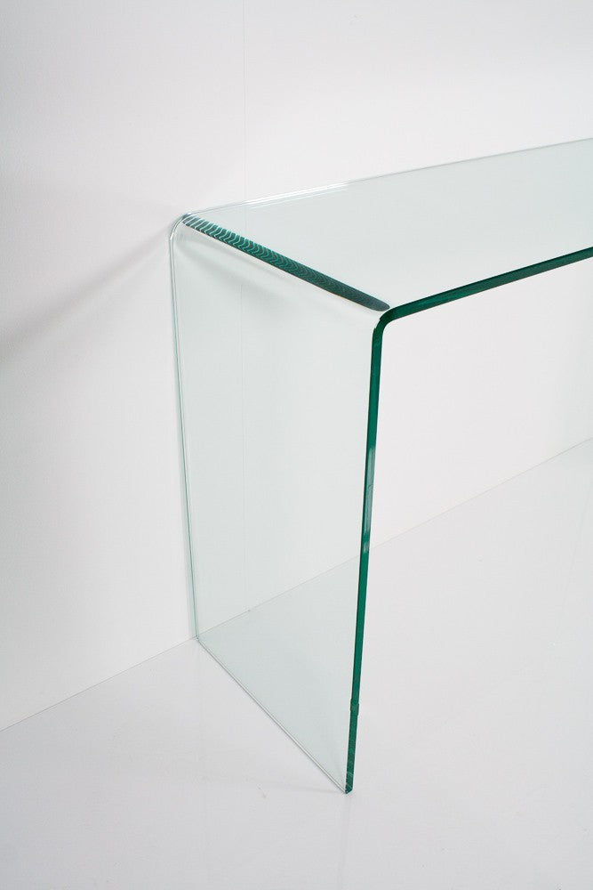 Wunderschöne kleine Glaskonsole aus 12 mm dickem gebogenem Glas.