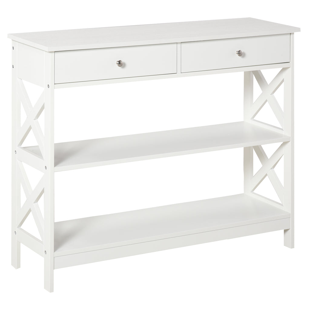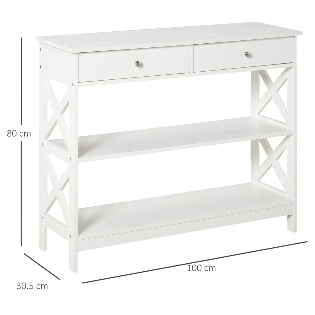 Eingangskonsole 2 Schubladen 100 x 30,5 x 80 cm aus weißem MDF